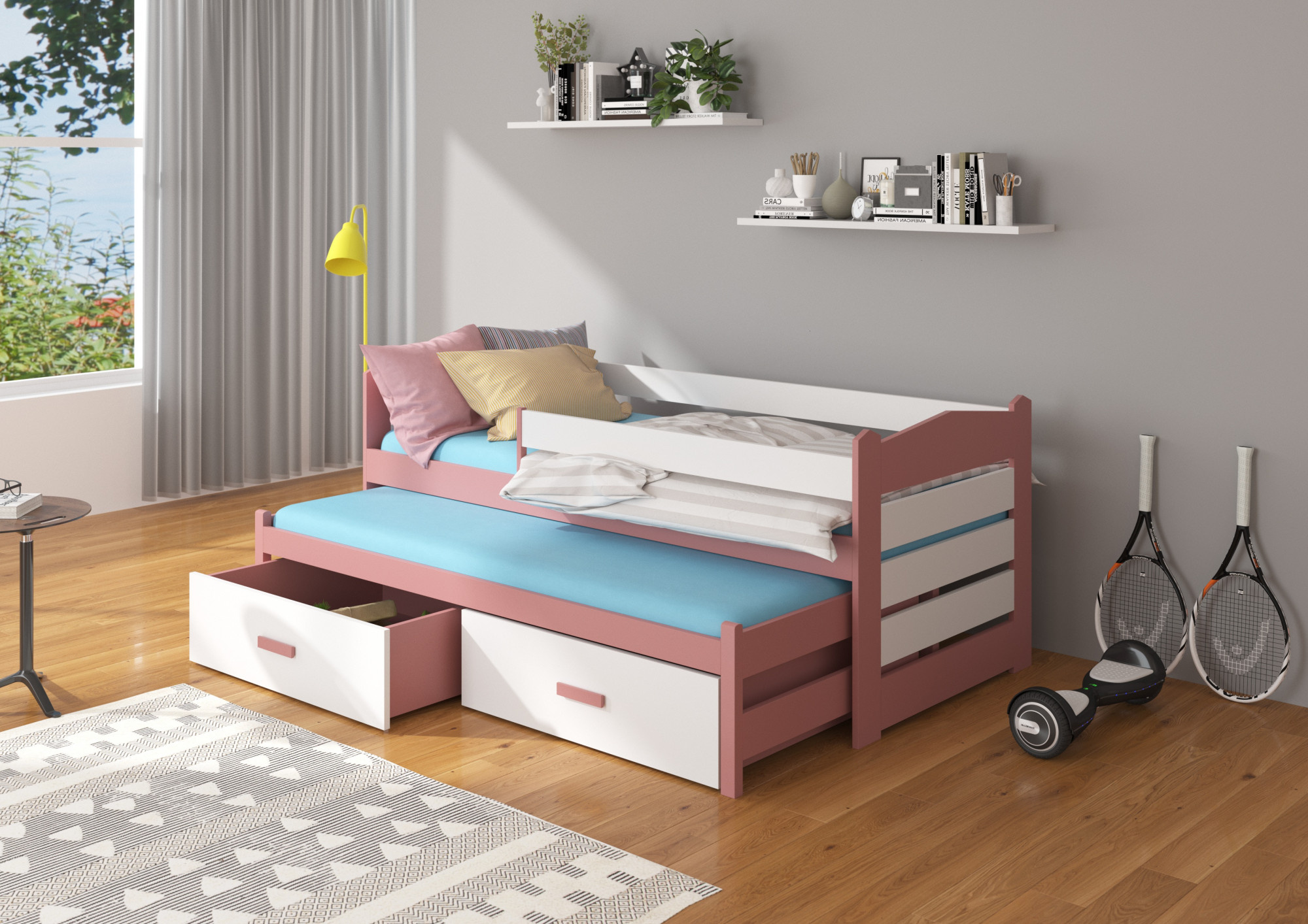 A TIARRO lees duplaágy ideális megoldás két testvér szobájába. Tökéletesen beválik váratlan vendégek látogatása esetén is. A modell két méretben és sok színben kapható, amelyek minden elrendezéshez illenek. Az ágy két praktikus és funkcionális ágyneműtartó fiókkal rendelkezik, valamint tartós és erős kerettel, amely fenyőfából készült. A gyermek biztonságának növelése érdekében a modell további korláttal lett kiegészítve, amely megvédi a leeséstől. A matracok nem tartoznak az ágyhoz.