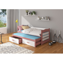 A TIARRO franciaágy ideális megoldás két testvér szobájában. Tökéletesen beválik váratlan vendégek látogatása esetén is. A modell két méretben és sok színben kapható, amelyek minden elrendezéshez illenek. Az ágy két praktikus és funkcionális ágyneműtartó fiókkal rendelkezik, valamint tartós és erős kerettel, amely fenyőfából készült. A matracok nem tartoznak az ágyhoz.