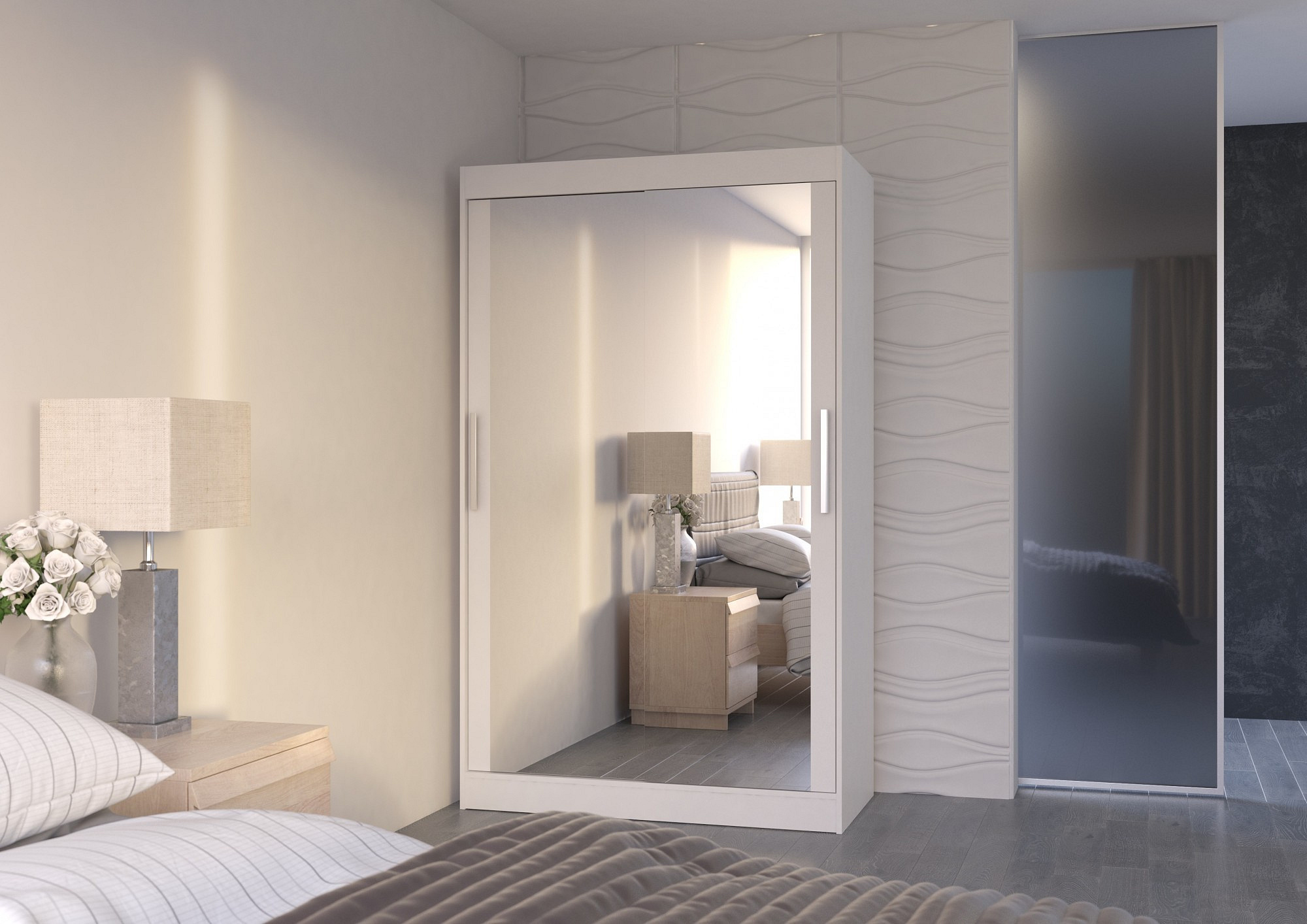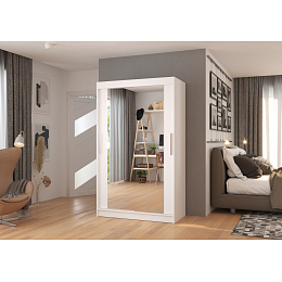 TIBAGO 120 tolóajtós és tükörrel ellátott ruhásszekrény Fehér+Fehér