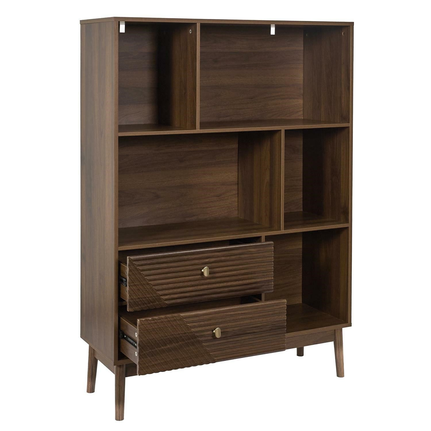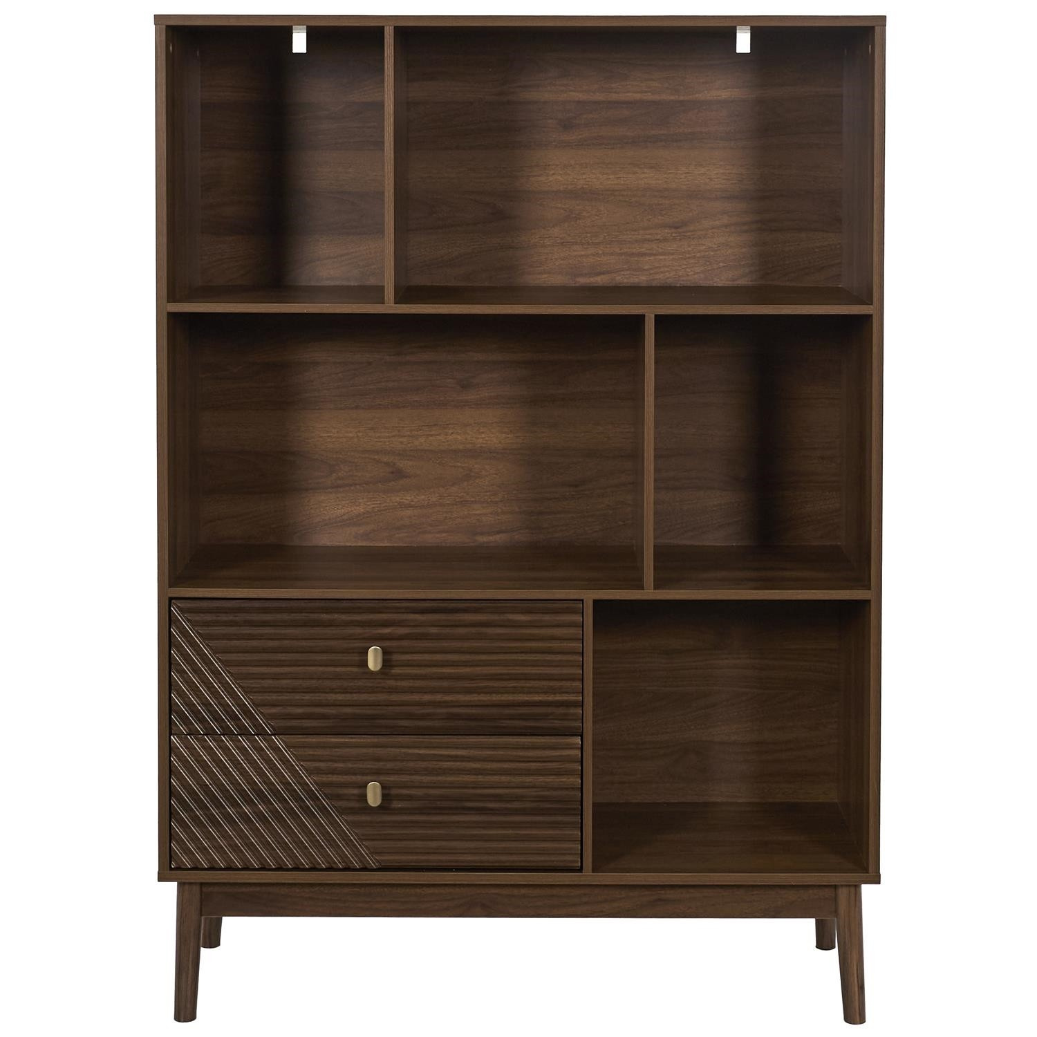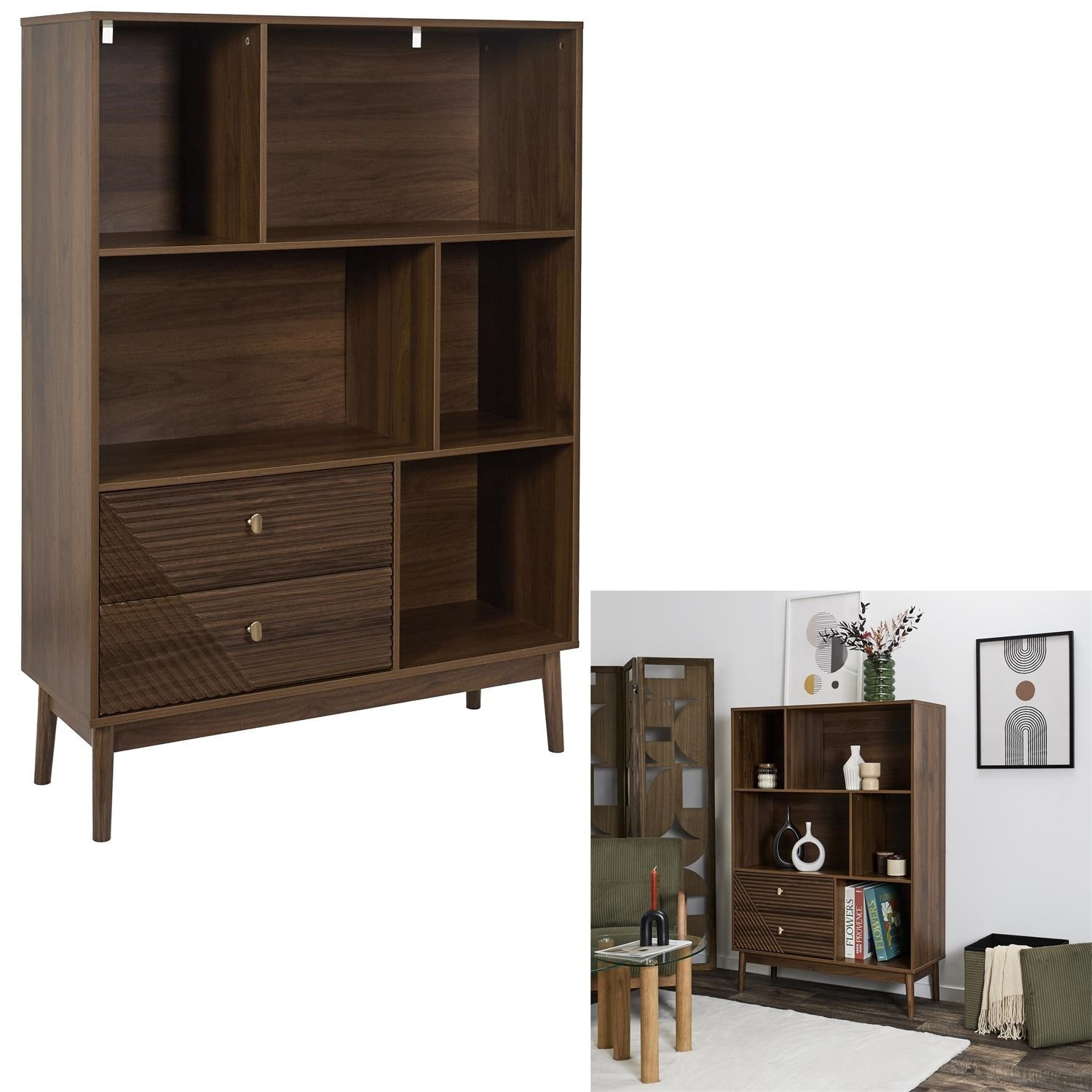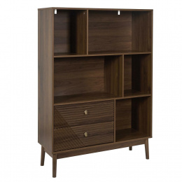 A polc összeszerelést igényel Anyag: MDF lap dió utánzatú furnérral. Fenyőfa lábak, fém fogantyúk. Komód két fiókkal, fém golyóscsapágyas síneken. Az aszimmetrikus polcok modern megjelenést kölcsönöznek a Max bútornak. bútor terhelése 50 kg.