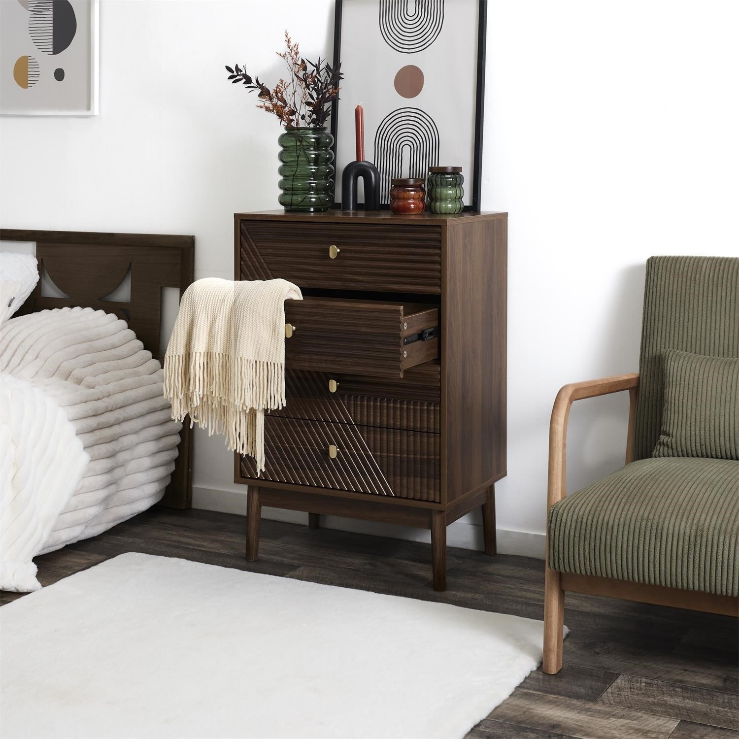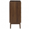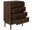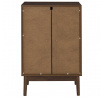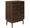 A komód összeszerelést igényel Anyag: MDF lap dió utánzatú furnérral. Fenyőfa lábak, fém fogantyúk. Komód két ajtóval, amelyek mögött további polcok rejtőznek. Max. bútor terhelése 40 kg.