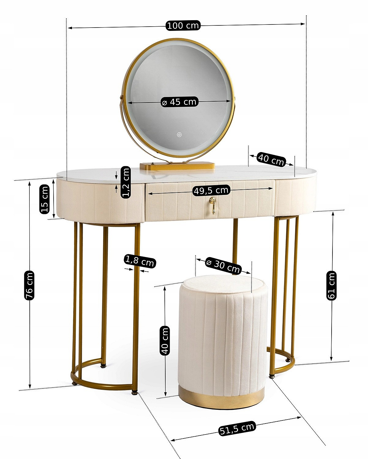 Toaletka ASHLEY Beżowa/Złota