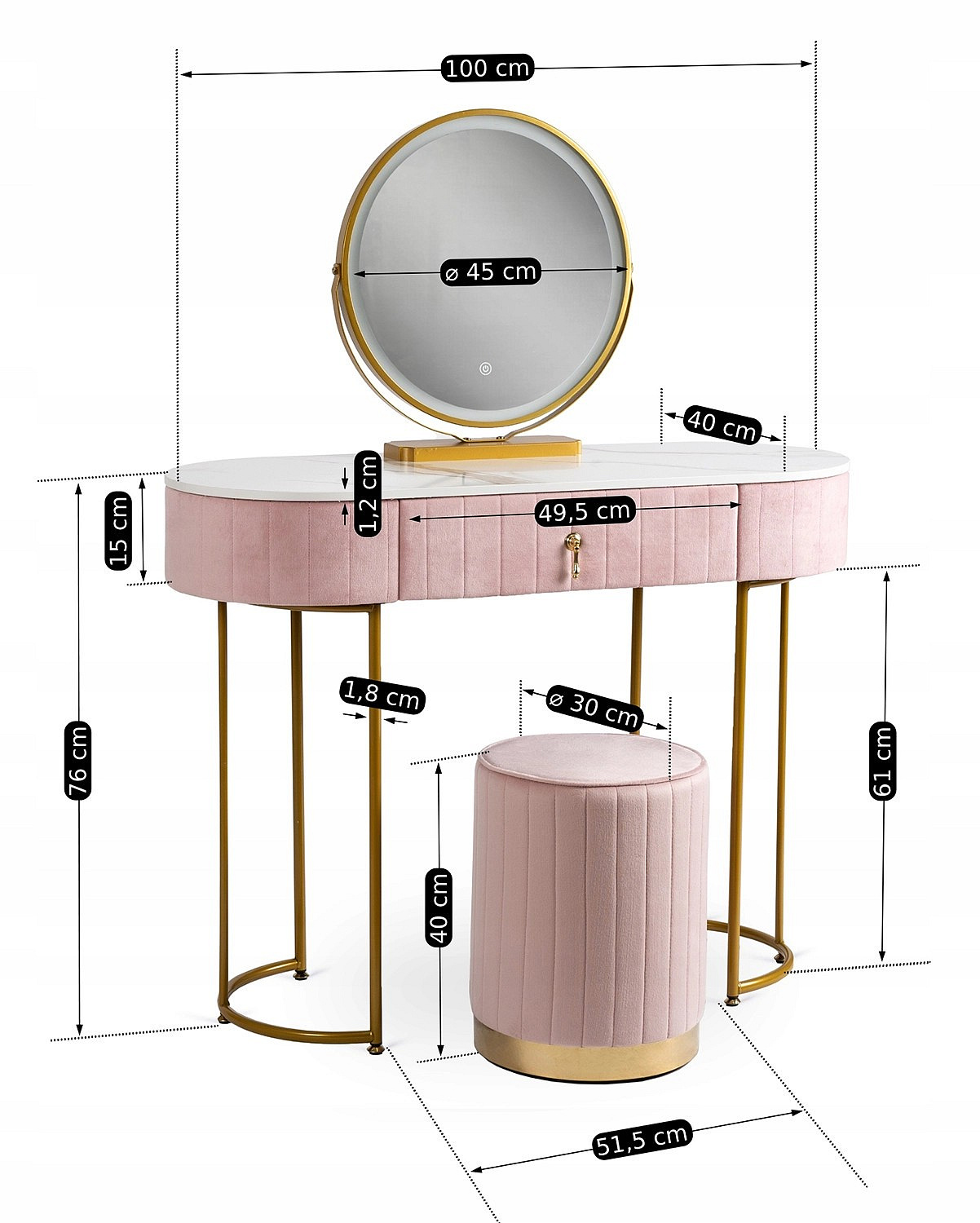 Toaletka ASHLEY Różowa/Złota