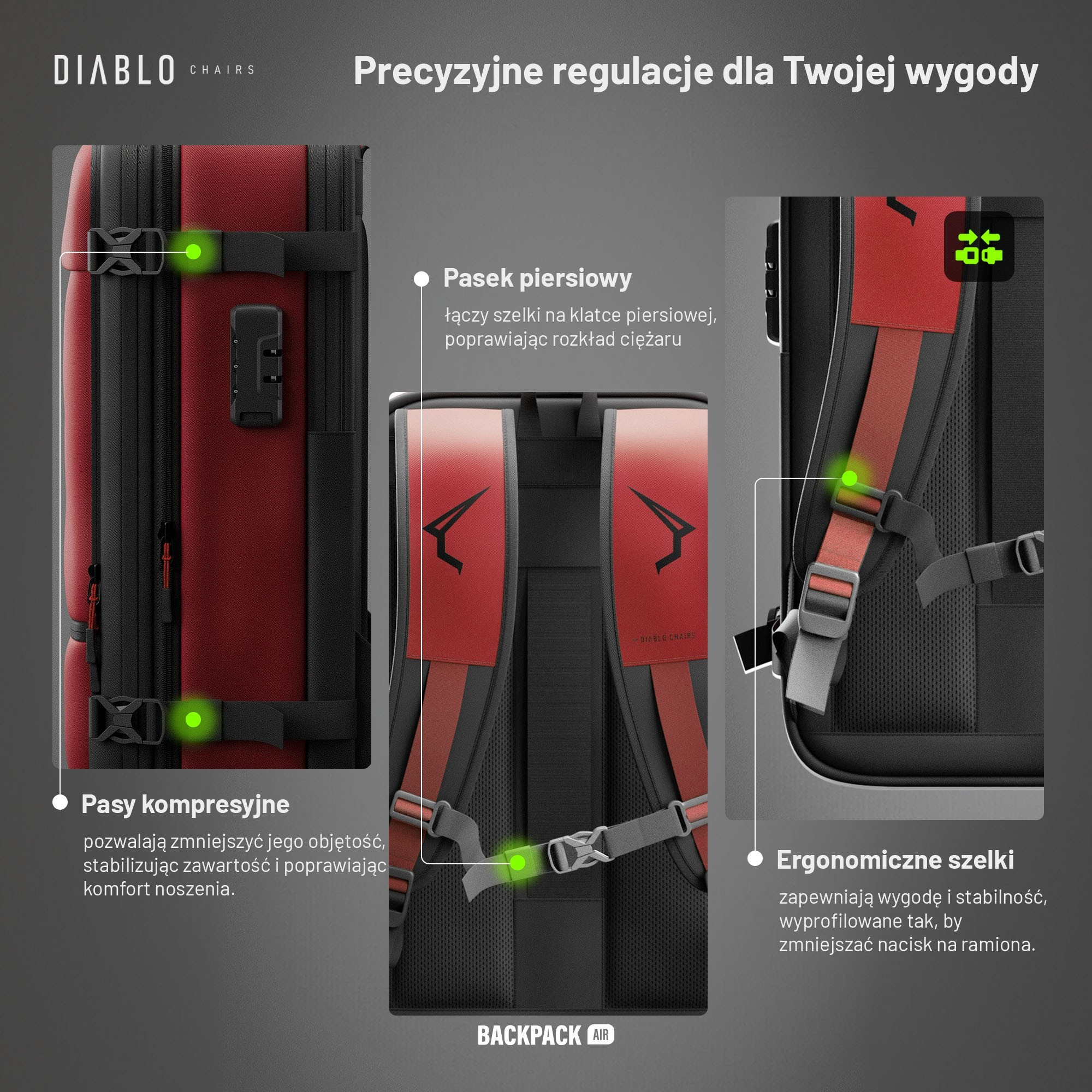 A Chairs Backpack Air nem csak egy hétköznapi hátizsák. Ez egy átgondolt rendszer, amely ötvözi a tartósságot, kényelmet és praktikusságot. Elegáns bordó színű kialakítása kiemel a tömegből, miközben biztosítja, hogy mindig kéznél legyen minden szükséges dolog.