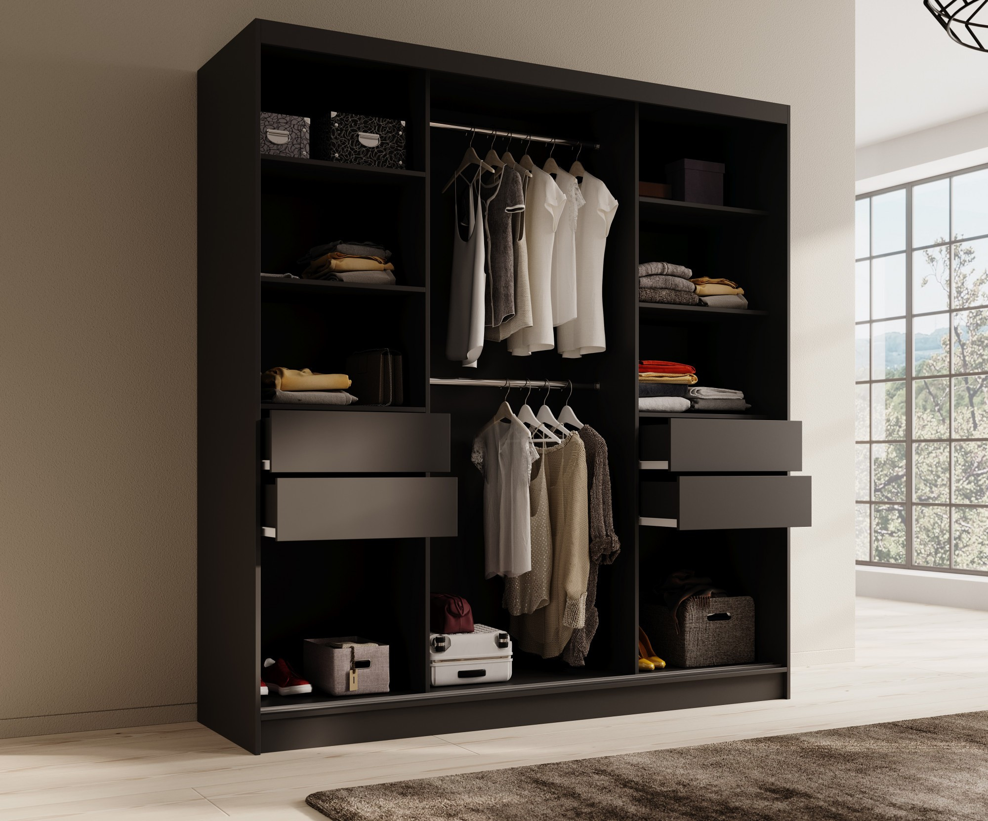 Tola 200 Gardróbszekrény Fekete+Fekete
