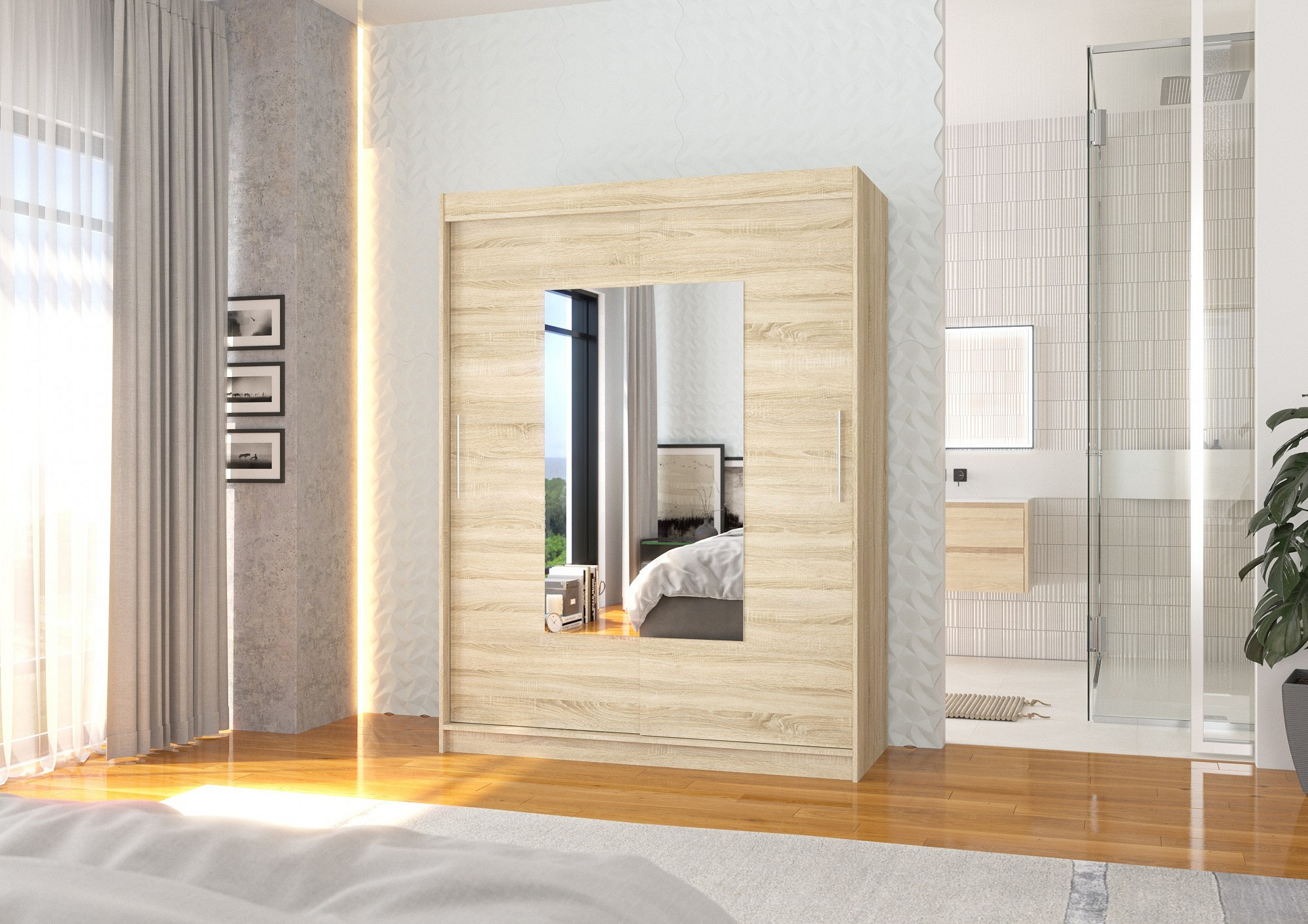 Tolóajtós és tükörrel ellátott DORRIGO 150 Sonoma+Sonoma ruhásszekrény