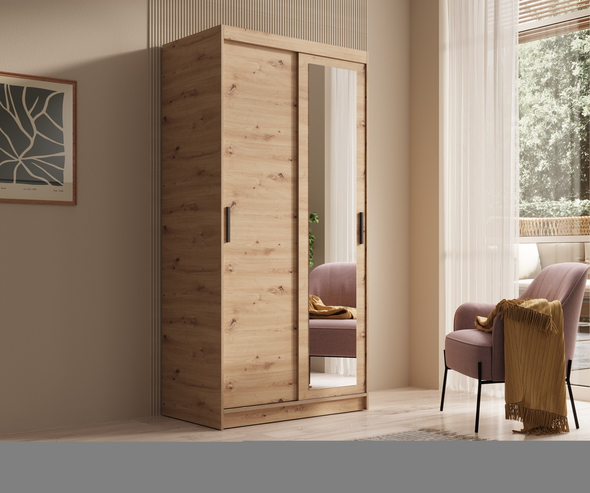 Tolóajtós és tükörrel ellátott Hailey 100 Artisan+Artisan ruhásszekrény