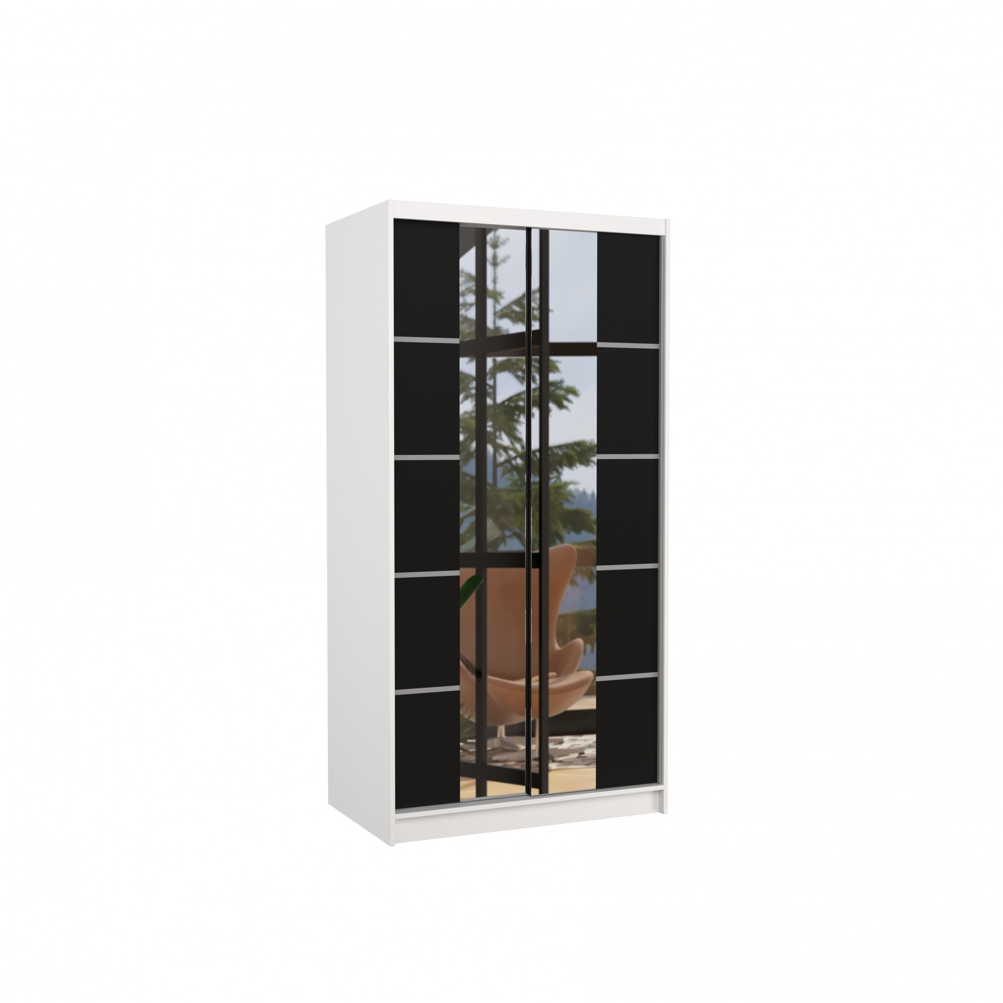 Tolóajtós és tükörrel ellátott ruhásszekrény KSAWER 100 Fehér+Fekete