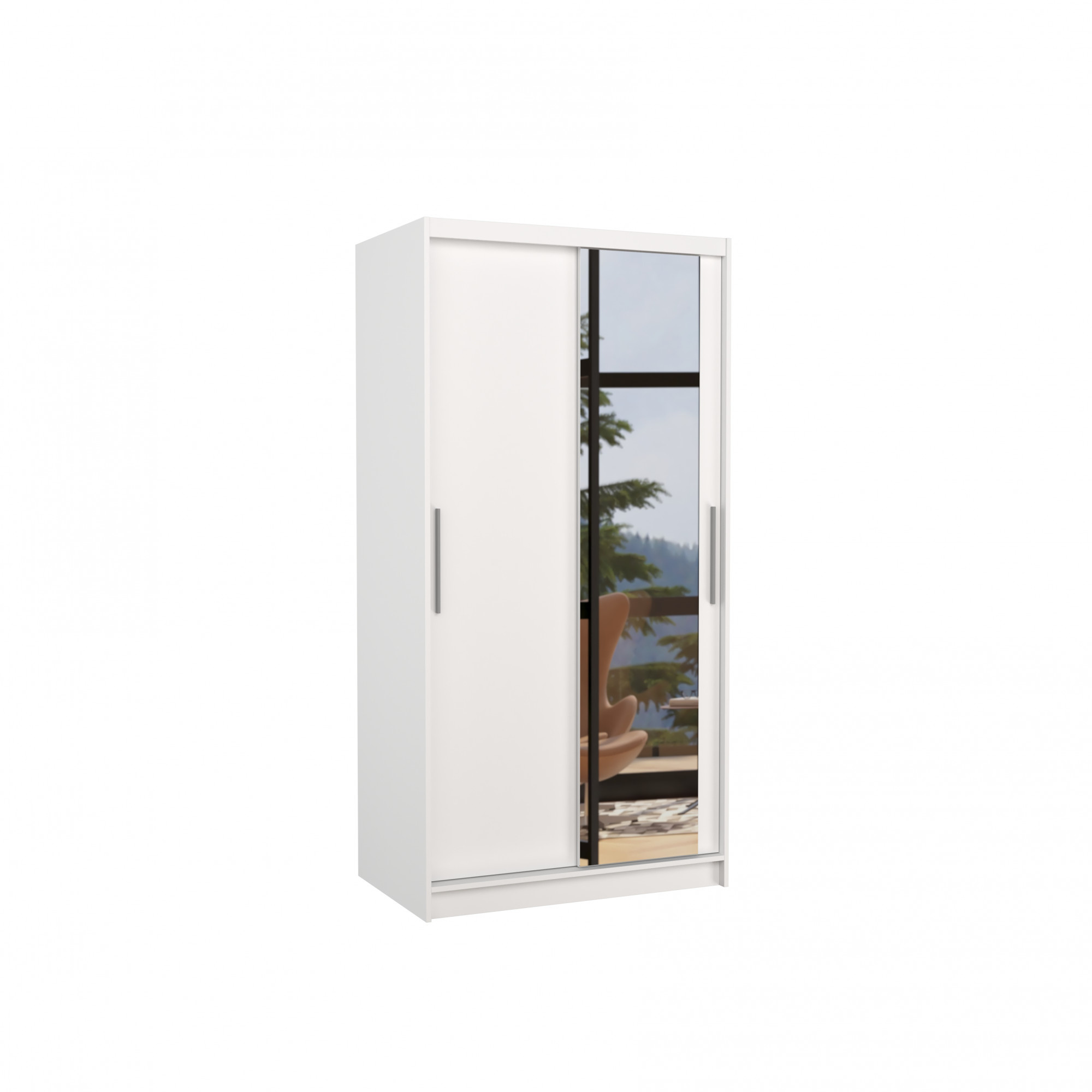 Tolóajtós és tükrös ruhásszekrény BAROS 100 Fehér+Fehér