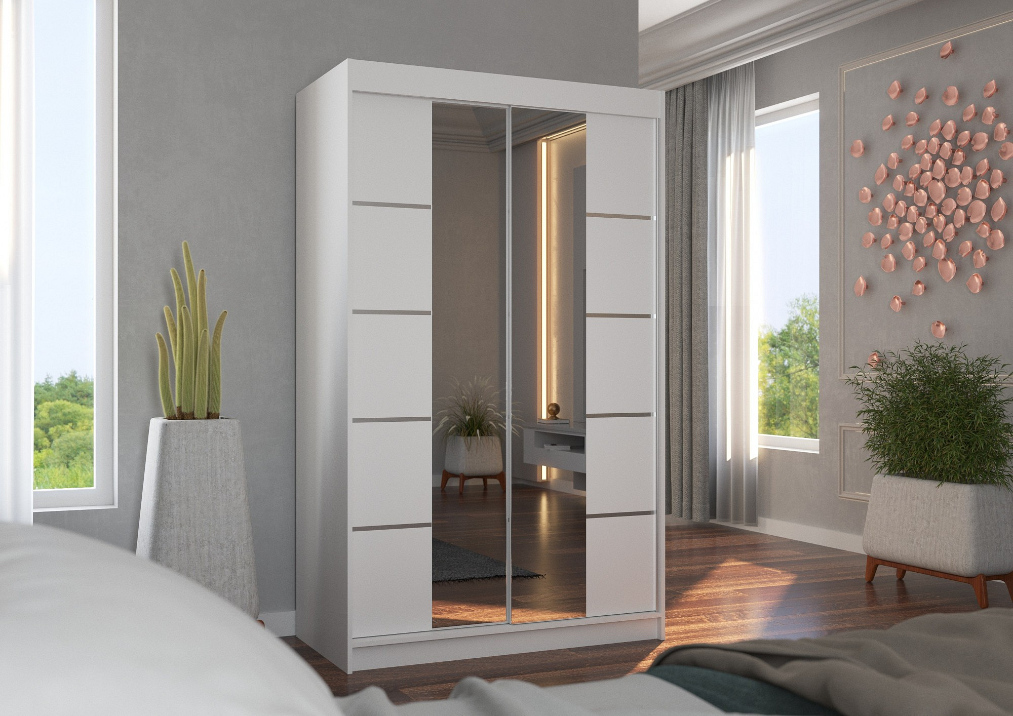 Tolóajtós és tükrös ruhásszekrény GENUA 120 Fehér+Fehér