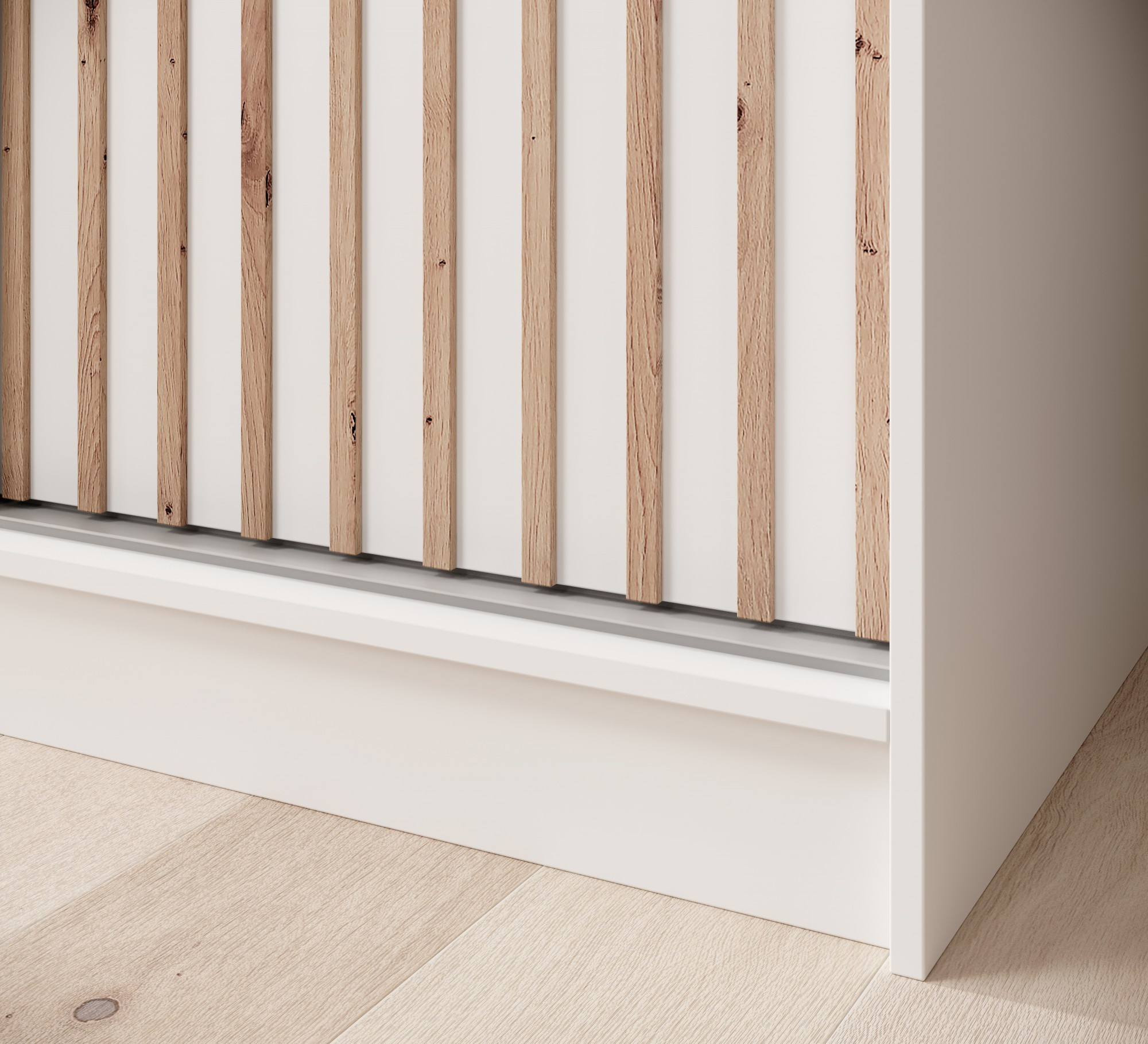 Az Ida 200 tolóajtós szekrény tükörrel és lamellákkal modern és stílusos megoldás azok számára, akik értékelik a funkcionalitást és az esztétikát egyaránt.