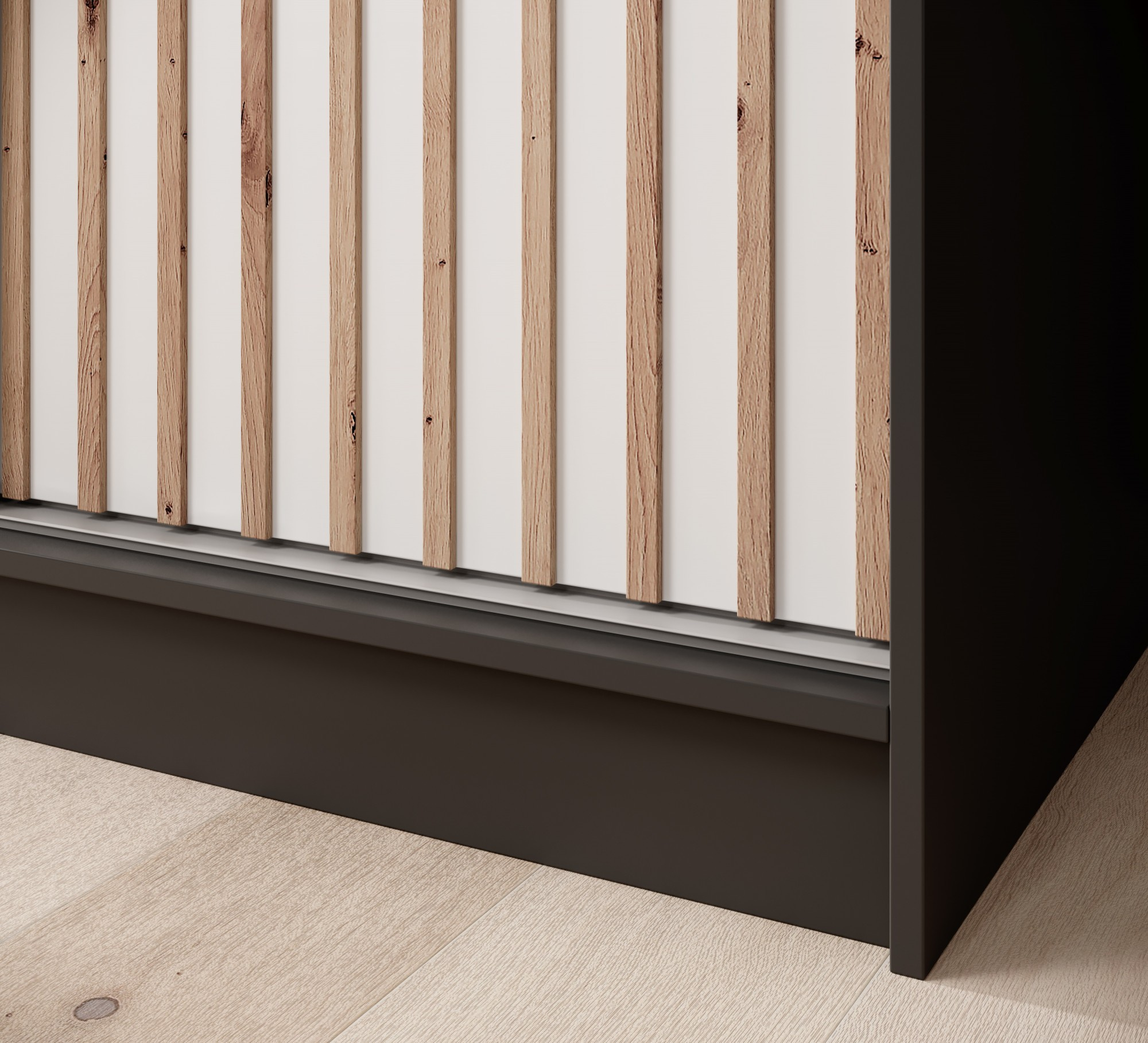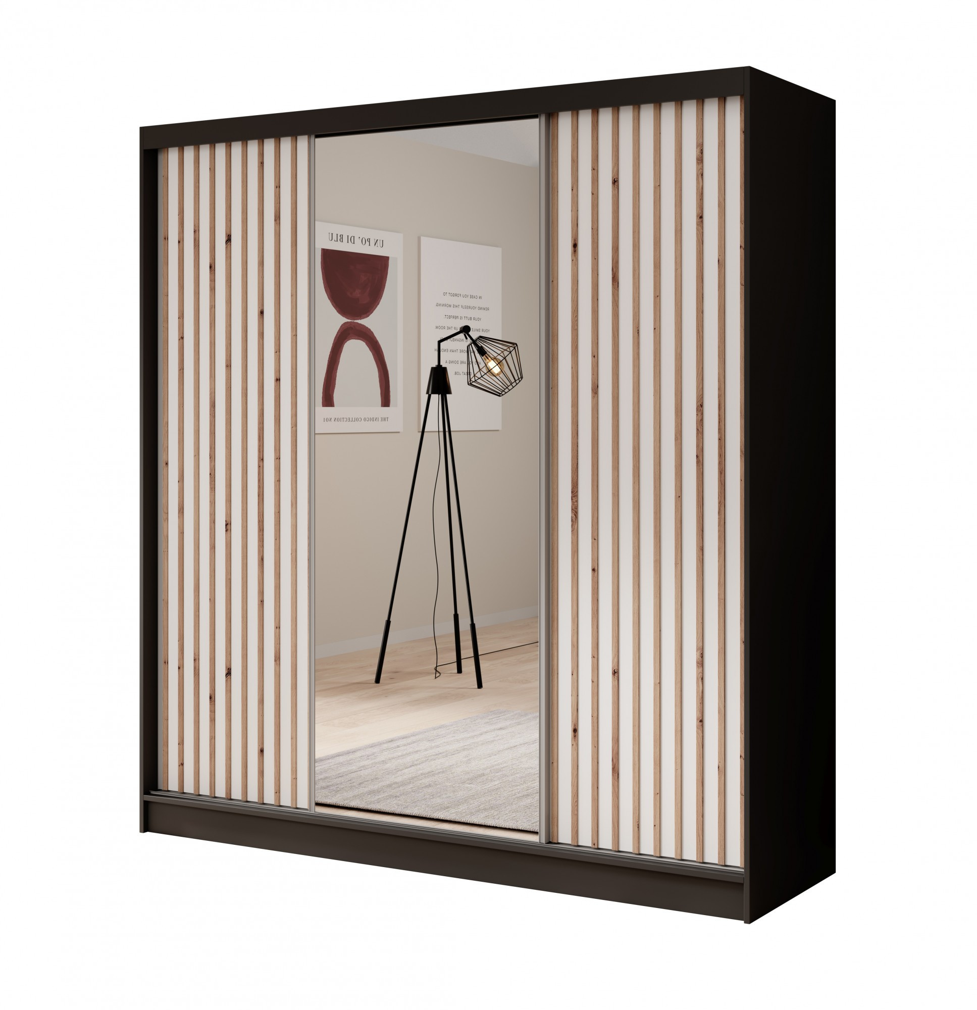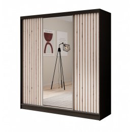 Tolóajtós és tükrös ruhásszekrény Ida 200 Fekete+Fehér