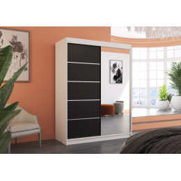 Tolóajtós és tükrös ruhásszekrény LIMBO 150 Fehér+Fekete