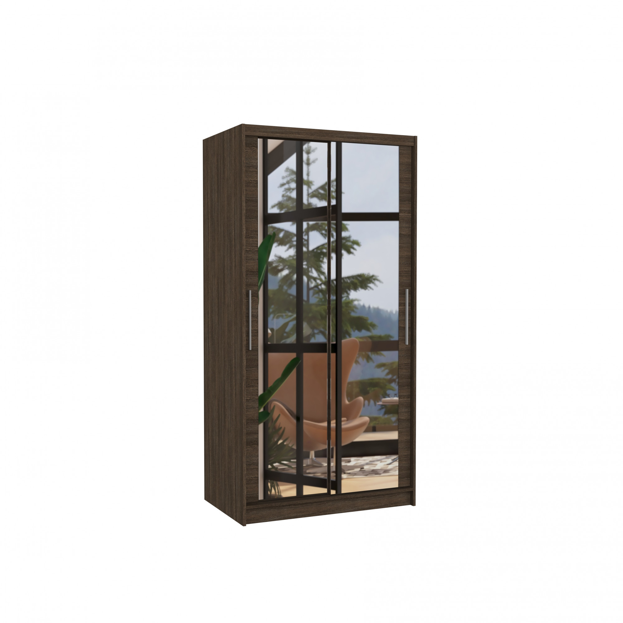 Tolóajtós és tükrös ruhásszekrény NEVIO 100 Choco+Choco