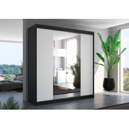 Tolóajtós és tükrös ruhásszekrény PERQS 200 Fekete+Fehér