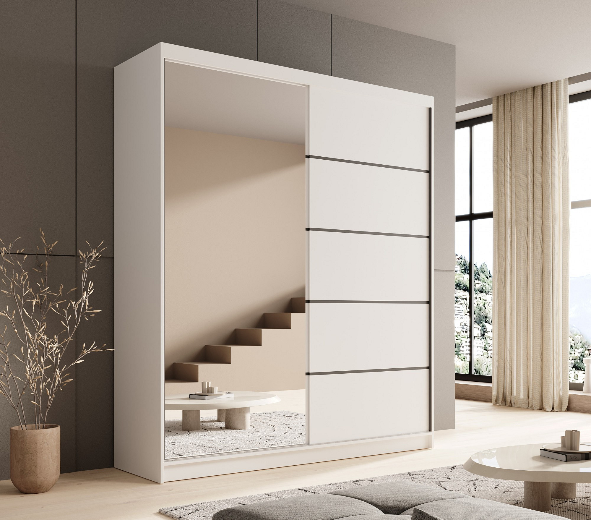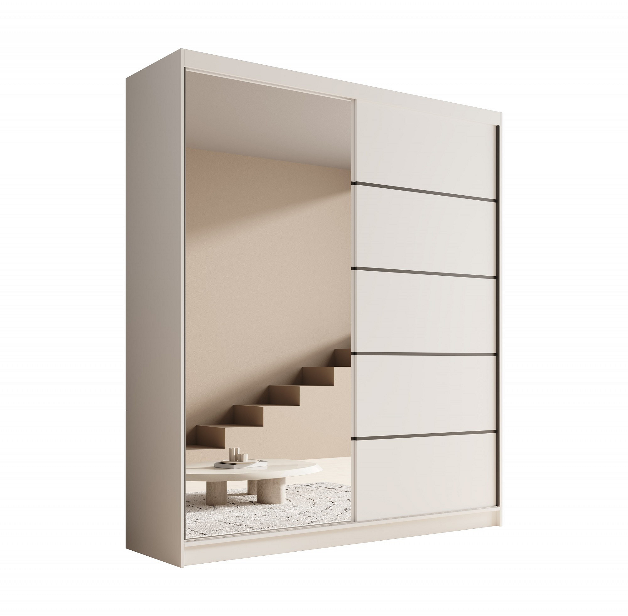 Tolóajtós és tükrös szekrény Nico 180 Fehér+Fehér