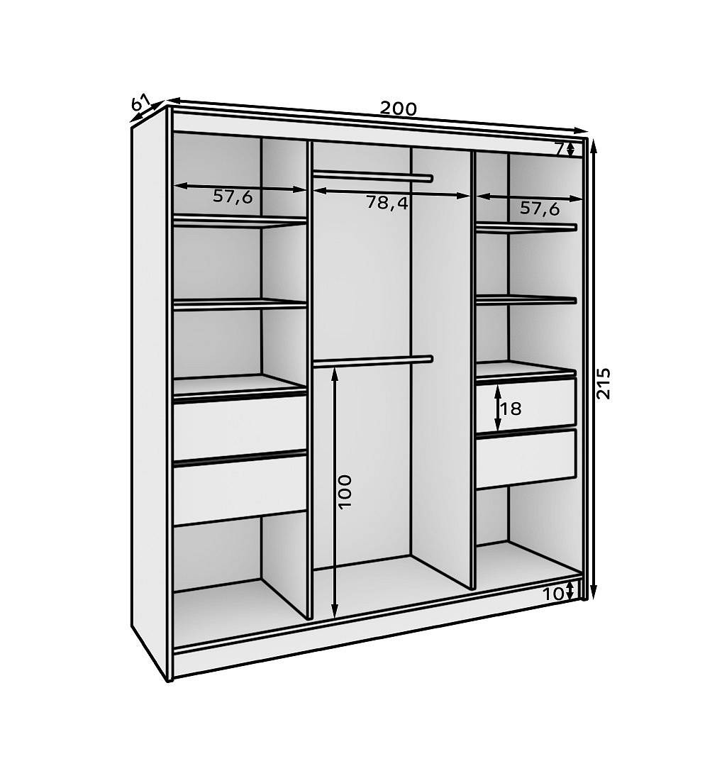 A tolóajtós Keri szekrény ideális megoldás azok számára, akik értékelik a praktikusságot és az esztétikát. Átgondolt kialakításának köszönhetően könnyedén elfér benne minden szükséges dolog, miközben modern jelleget kölcsönöz a belső térnek. A Keri szekrénynek köszönhetően a tér rendezettebbé és stílusosabbá válik. Az ideális elegancia és funkcionalitás ötvözete egy bútordarabban. Megállja a helyét a hálószobában, az előszobában és a gardróbban is. Adj hozzá a belső teredhez egy Keri szekrényt, és élvezd a tökéletesen kihasznált teret!