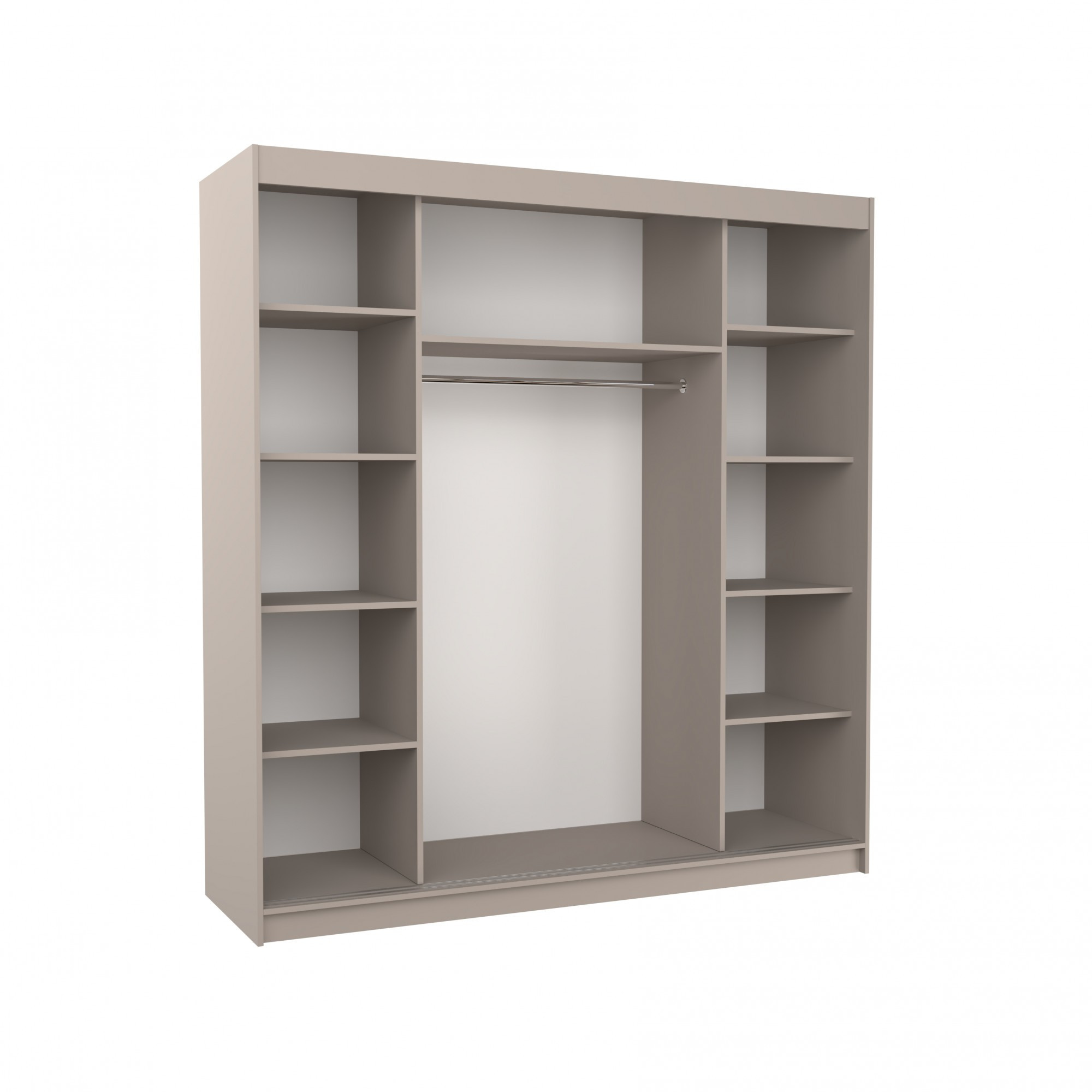 A TERECIA tolóajtós ruhásszekrény ideális módja a tér rendezésének. A bútor tágas polcokkal és egy rúddal van felszerelve, amelyre felakaszthatja a ruhákat, öltönyöket, felsőruházatot vagy ingeket. Annak köszönhetően, hogy a szekrény tolóajtós, nem kell további helyet biztosítani az ajtók kinyitásához, ami ideális megoldássá teszi egy kis szoba vagy keskeny előszoba számára.