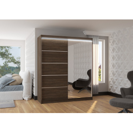 Tolóajtós ruhásszekrény tükörrel és LED világítással CARO 180 Choco+Choco