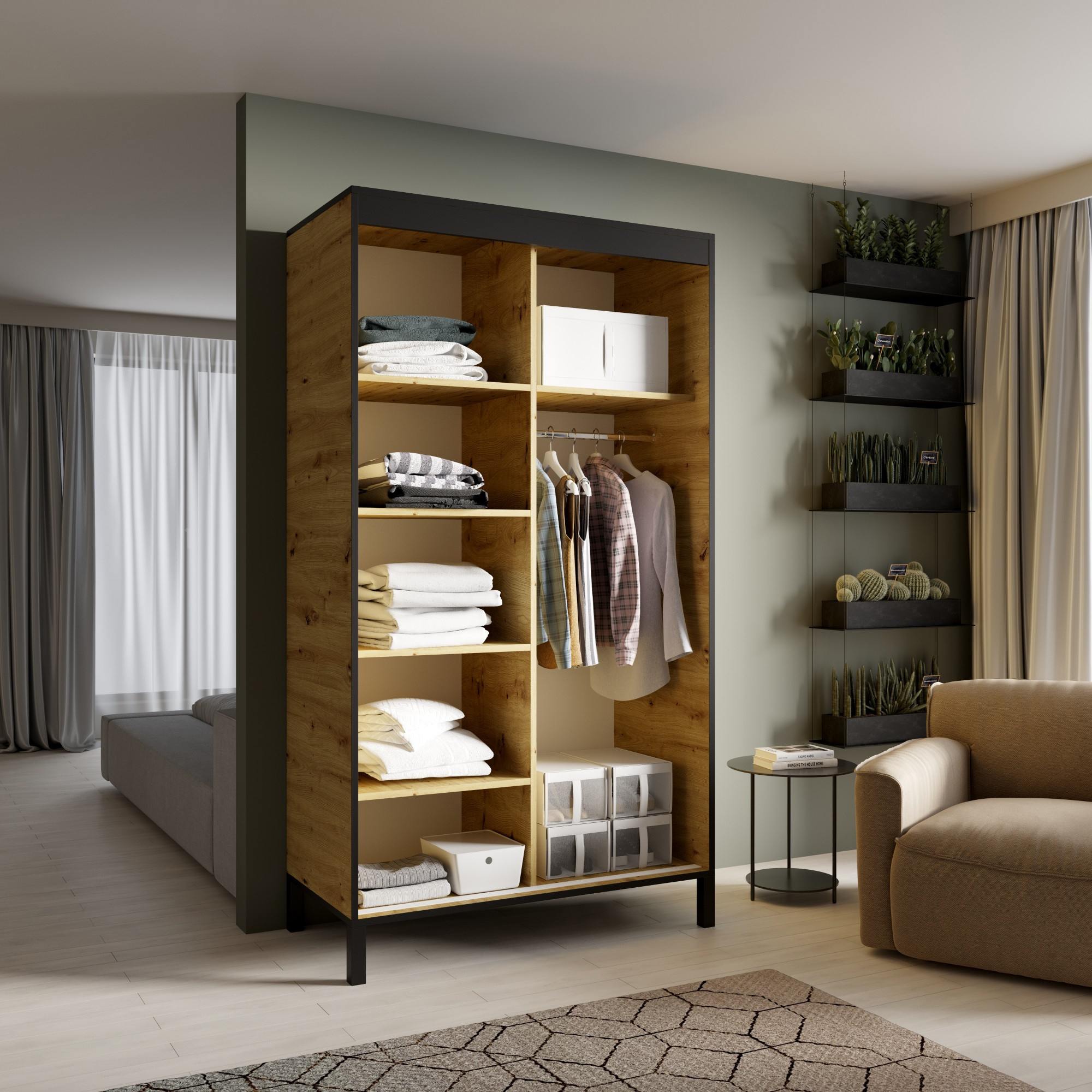 Tolóajtós szekrény BRIG 120 Artisan+Fekete