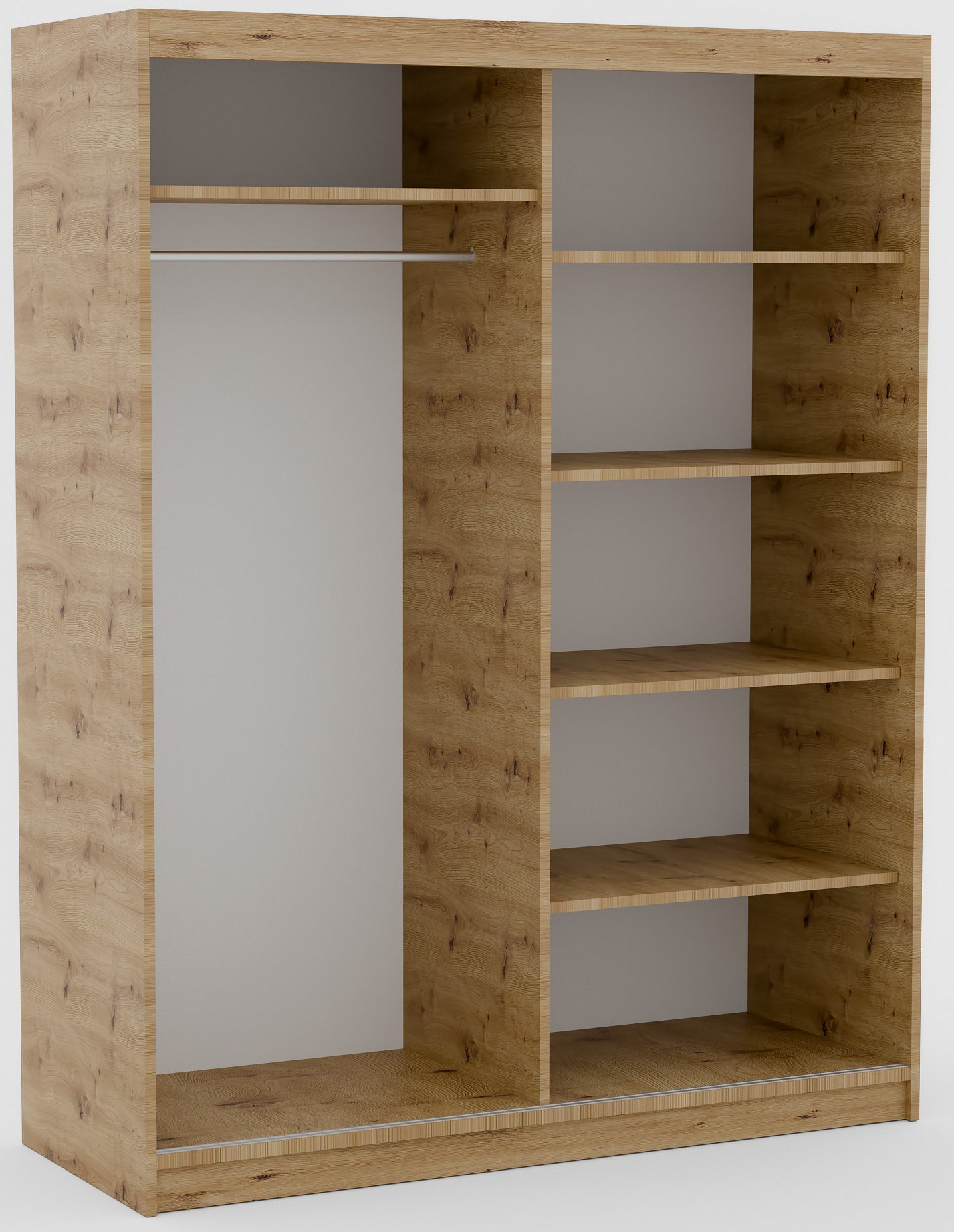 A Delia tolóajtós szekrény fa színű lamellákkal stílusos és praktikus megoldás a ruhák és egyéb tárgyak tárolására otthonában. Elegáns, fa színekben pompázó kialakítása melegséget és otthonosságot kölcsönöz a belső térnek, miközben számos különböző belső elrendezéshez illeszkedik. A szekrény ajtajai lamellákból készültek, ami könnyedséget és modernséget kölcsönöz neki.