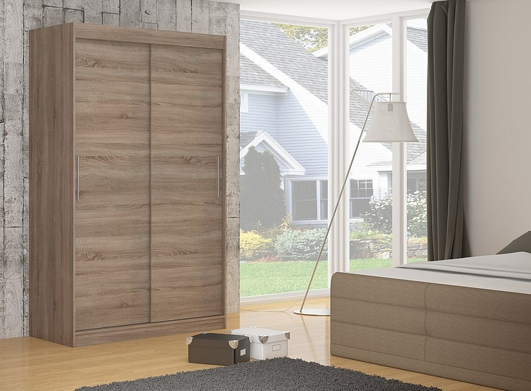 A tolóajtós DENVR gardróbszekrény ideális módja a tér rendezésének. A bútor tágas polcokkal és egy rúddal van felszerelve, amelyre felakaszthatja a ruhákat, öltönyöket, felsőruházatot vagy ingeket. Annak köszönhetően, hogy a szekrény tolóajtós, nem kell további helyet biztosítani az ajtók kinyitásához, ami ideális megoldássá teszi egy kis szoba vagy keskeny előszoba számára.