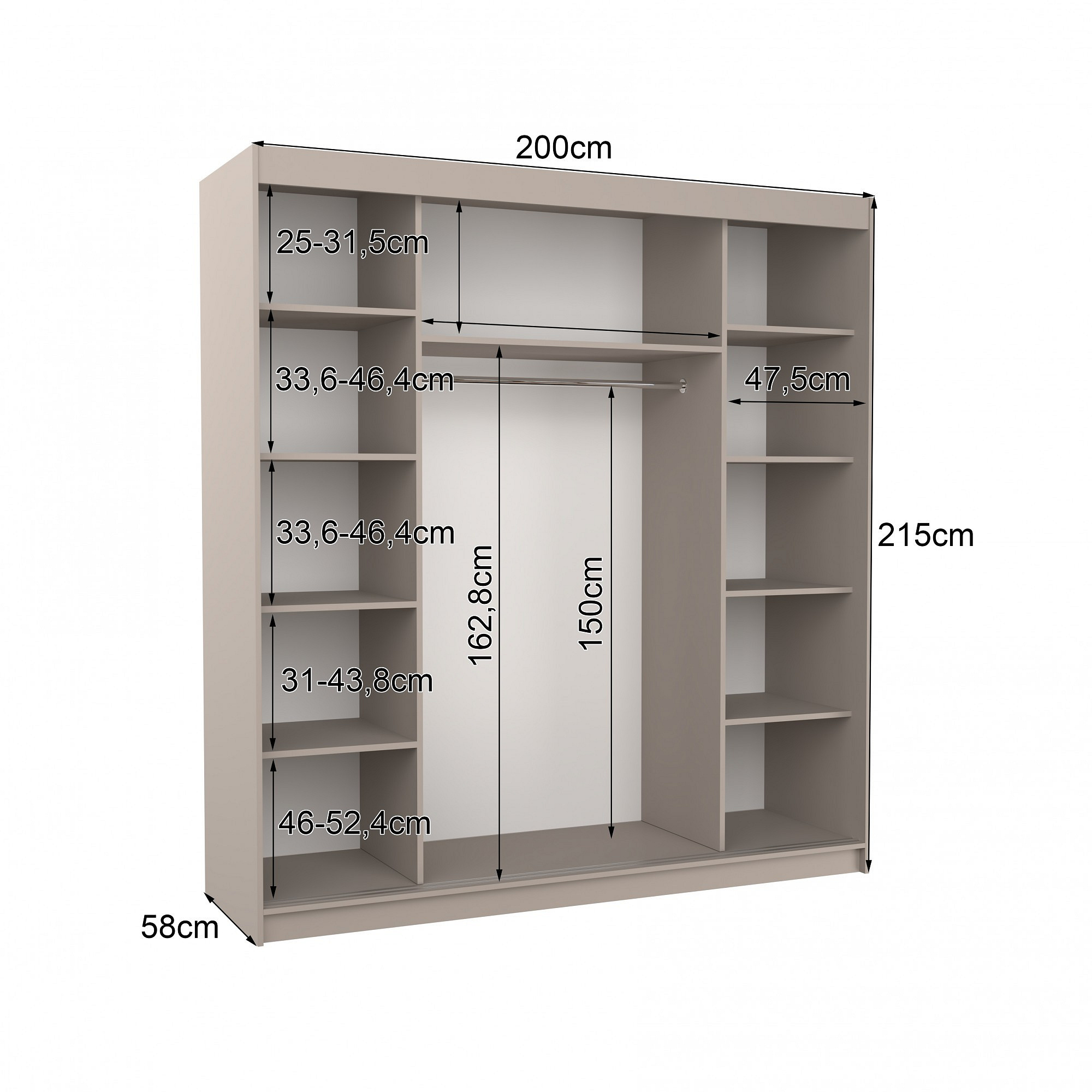 Tolóajtós szekrény ESTEVA 200 Kašmír+Kašmír