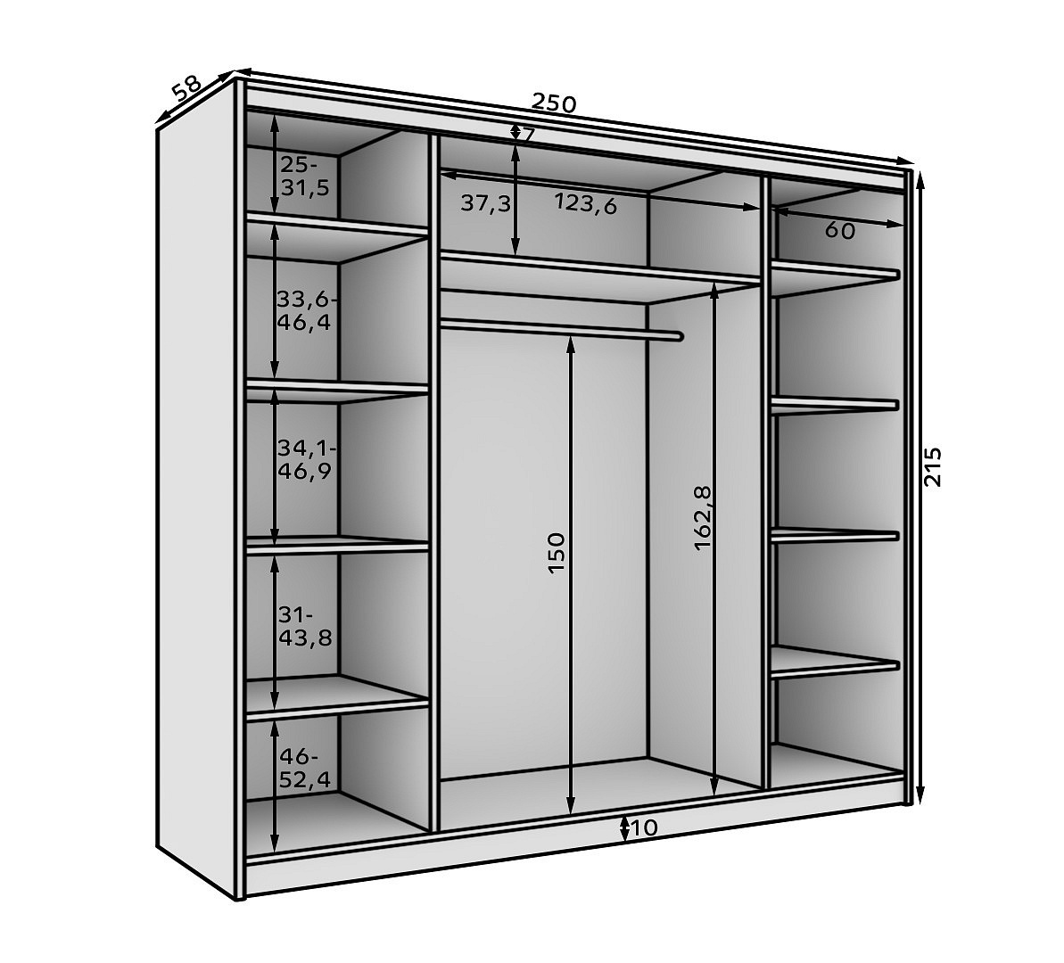 Tolóajtós szekrény Etna 250 Fehér+Fekete
