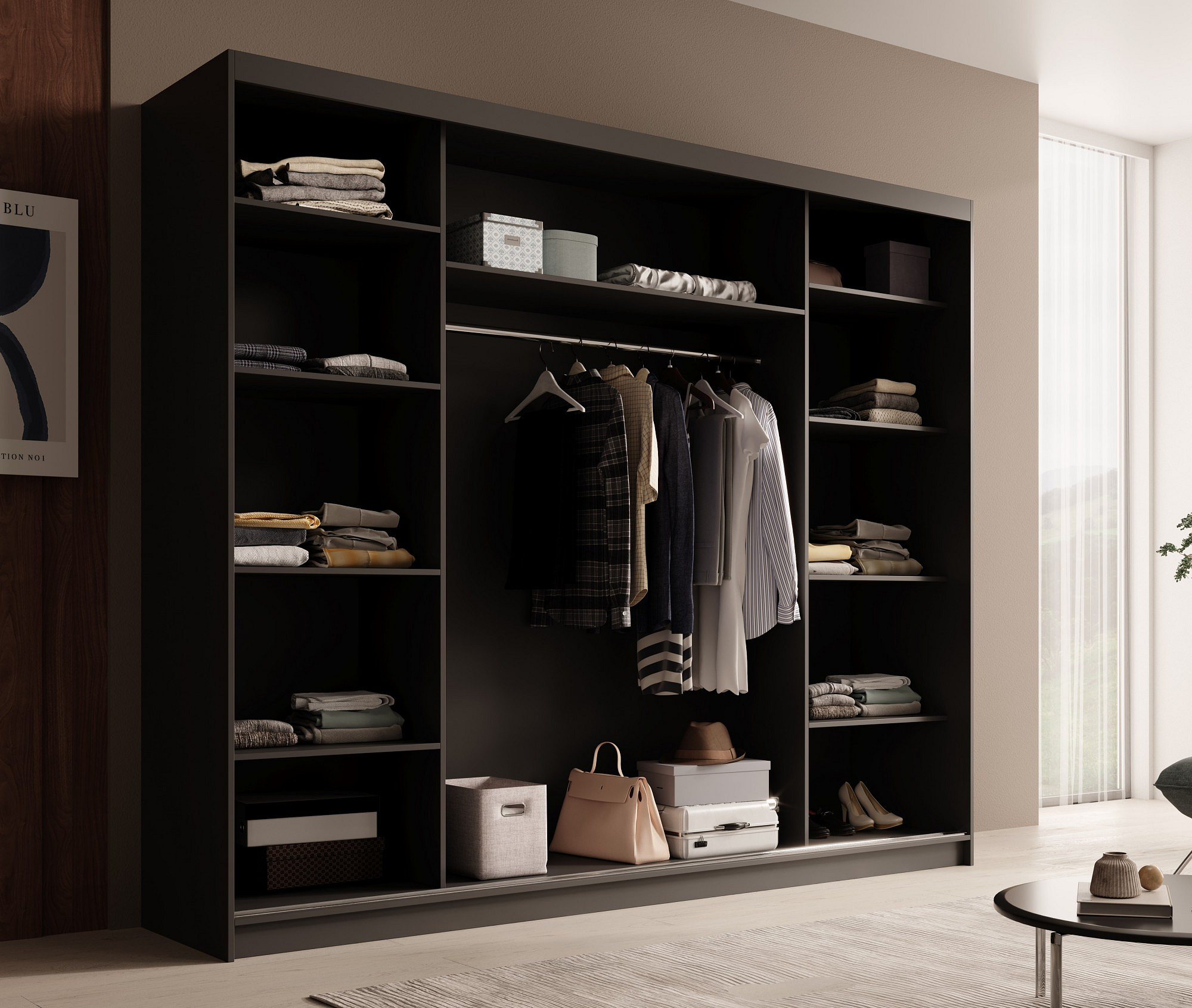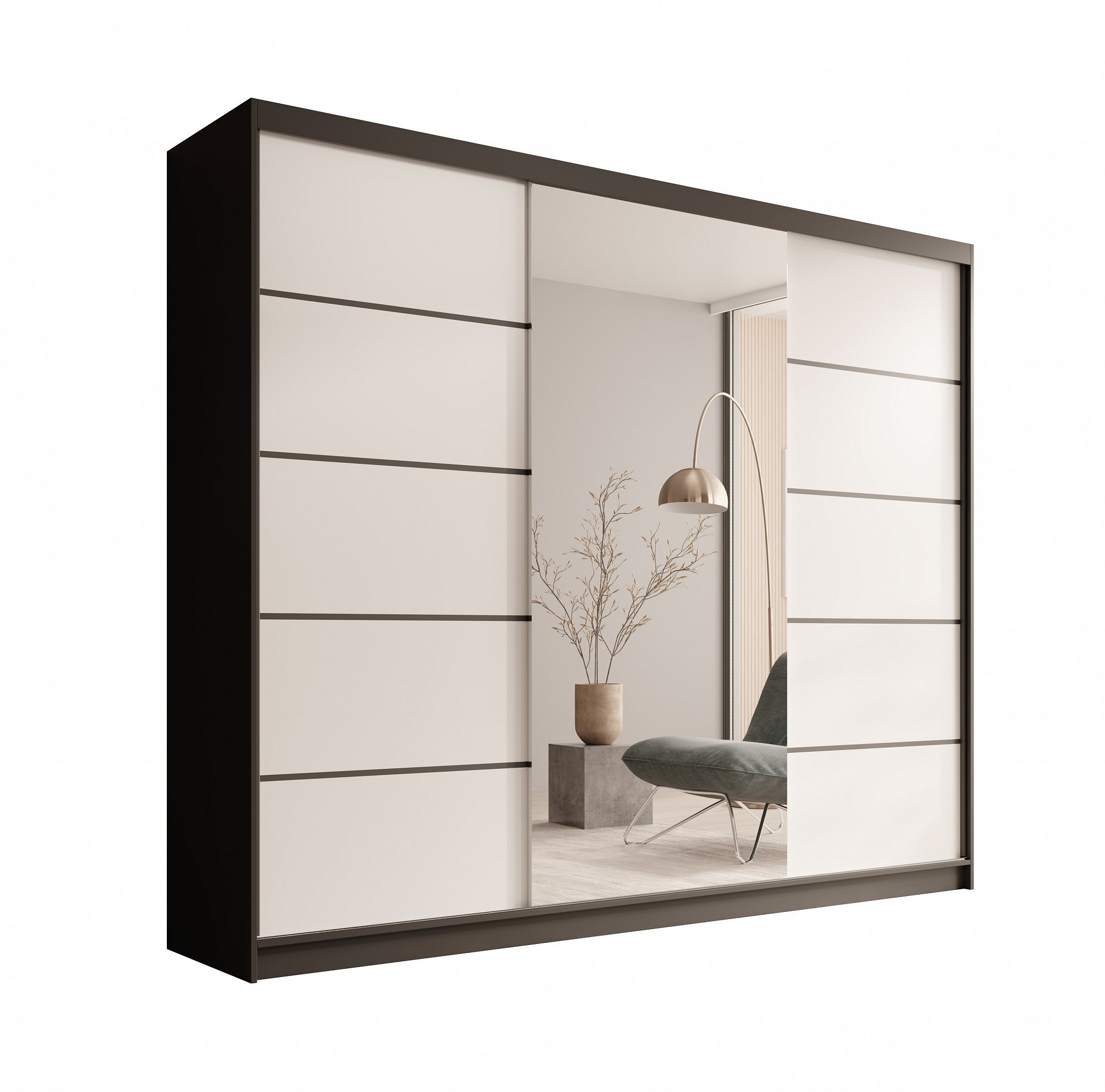 Tolóajtós szekrény Etna 250 Fekete+Fehér