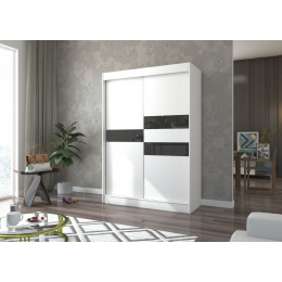 Tolóajtós szekrény lacobellel BATIA 150 Fehér+Fekete Lacobel