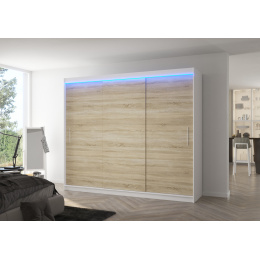 Tolóajtós szekrény LED világítással ANTOS 250 Fehér+Sonoma