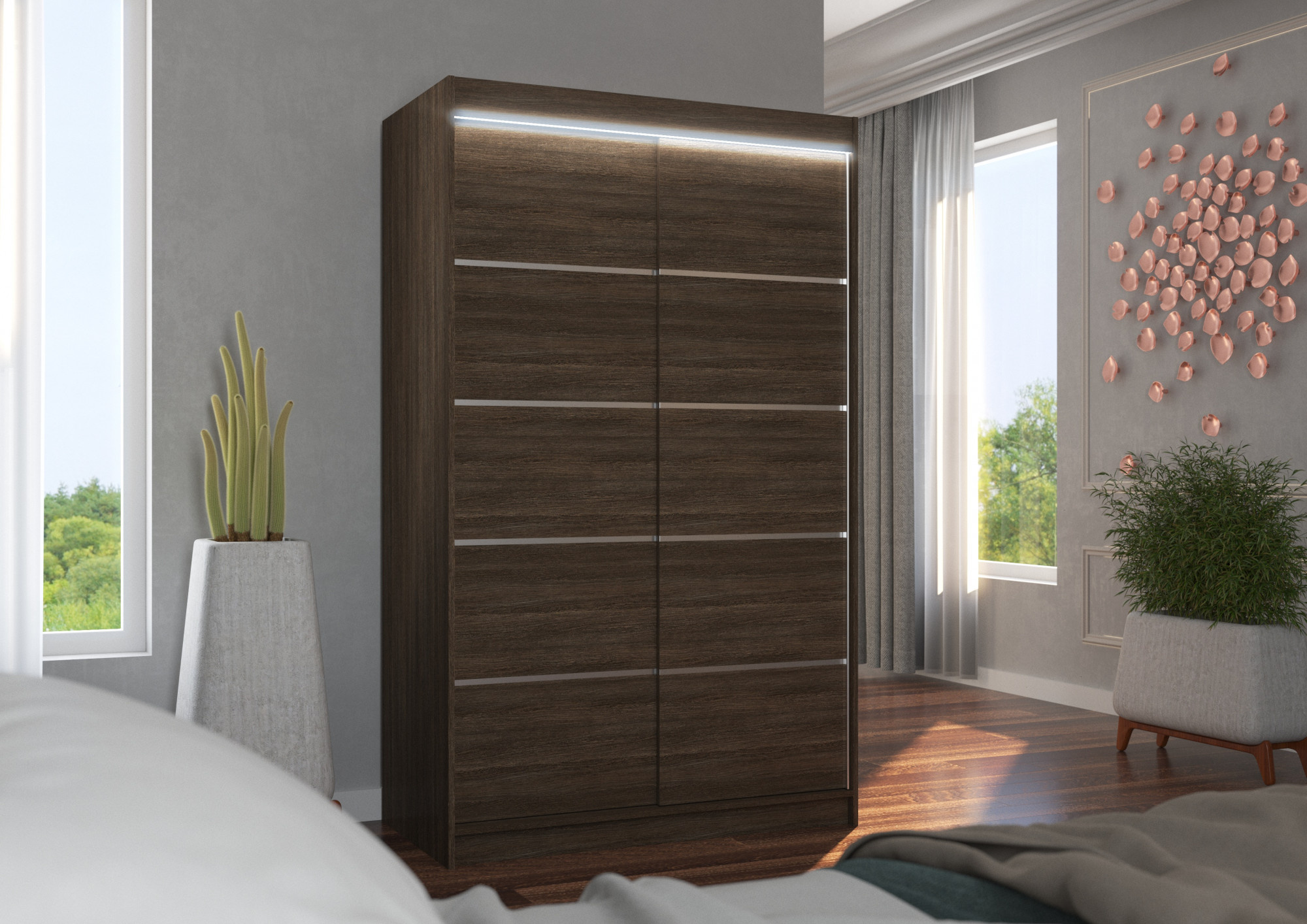 Tolóajtós szekrény LED világítással BENISSO 120 Choco+Choco