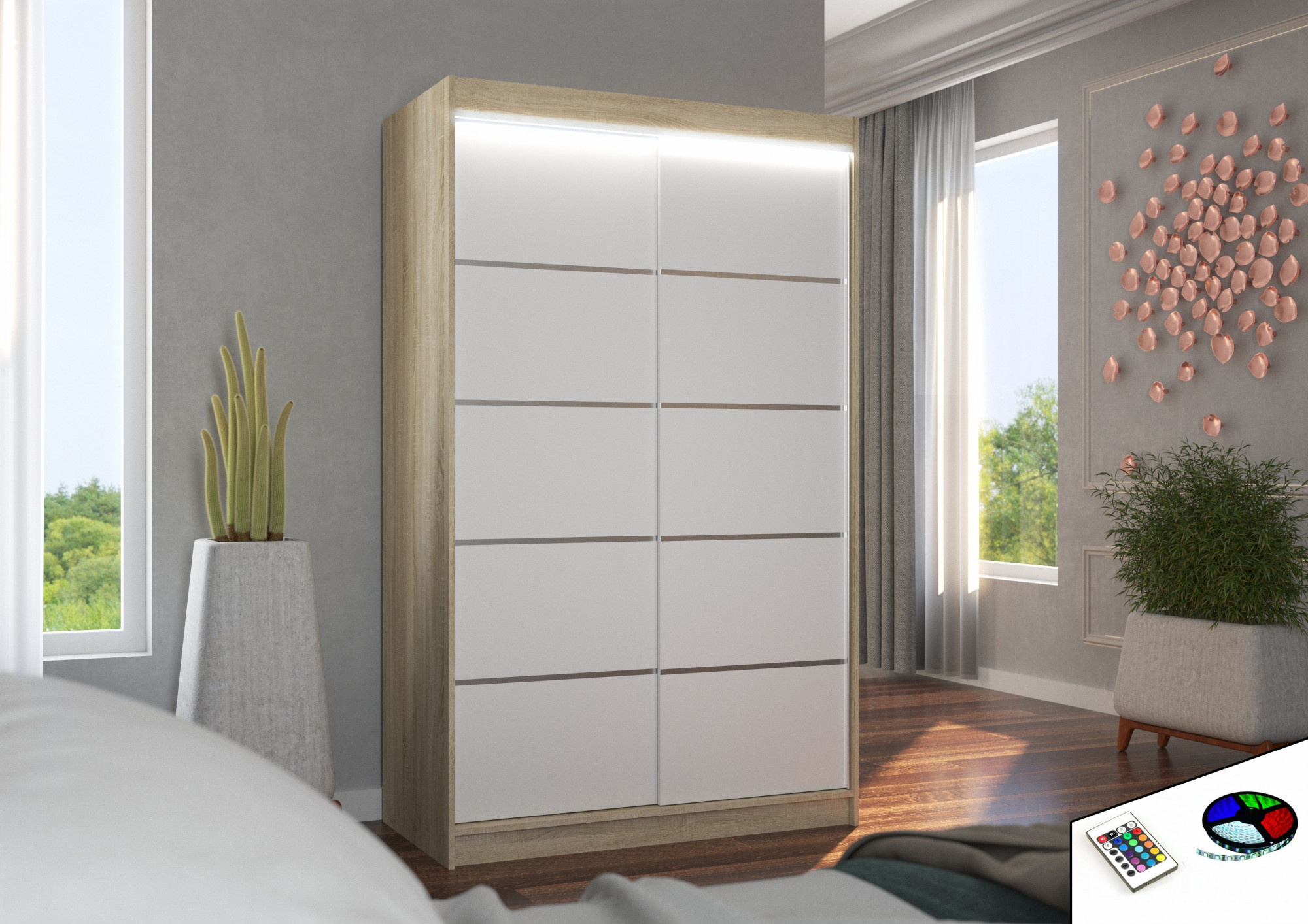 Tolóajtós szekrény LED világítással BENISSO 120 Sonoma+Fehér