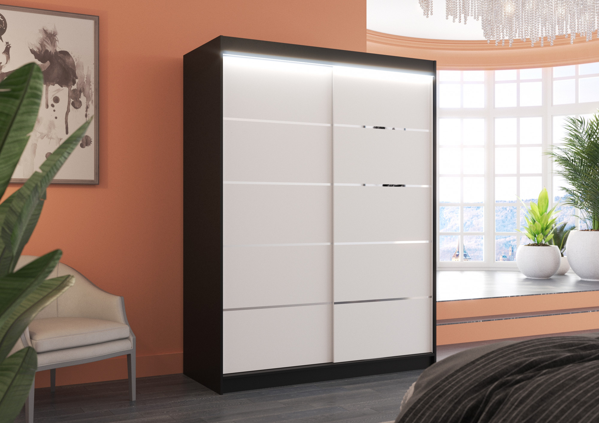 Tolóajtós szekrény LED világítással LUFT 150 Fekete+Fehér