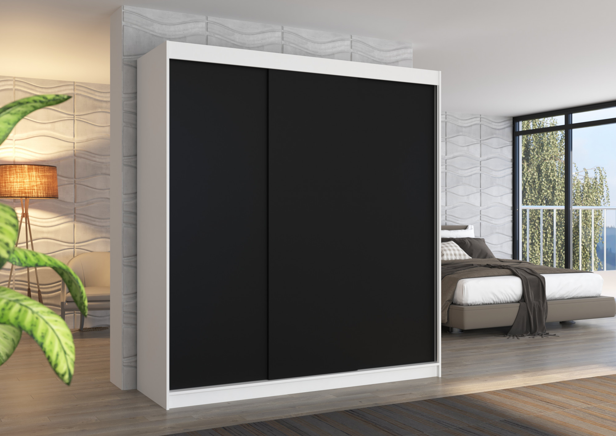 Tolóajtós szekrény MEGAN 200 Fehér+Fekete