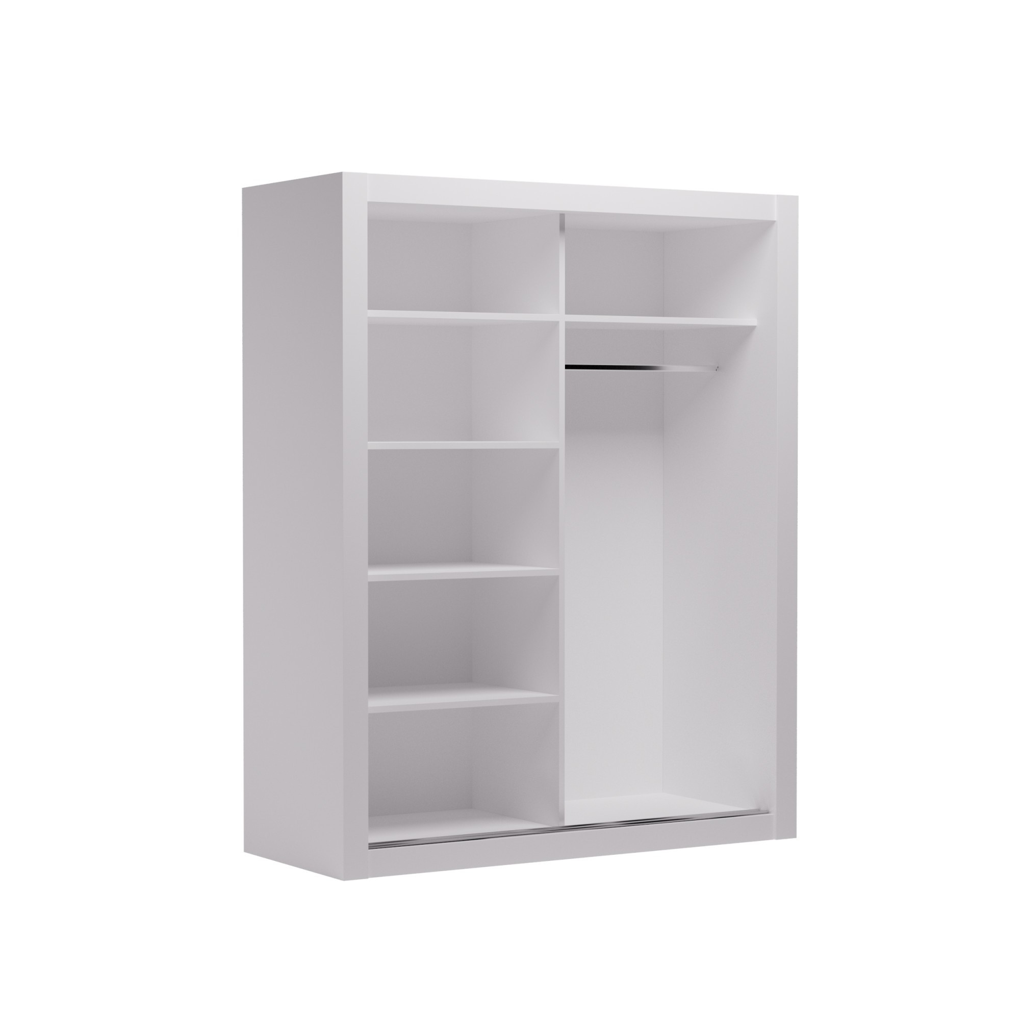 A MORELL tolóajtós gardróbszekrény ideális módja a tér rendezésének. A bútor tágas polcokkal és egy rúddal van felszerelve, amelyre felakaszthatja a ruhákat, öltönyöket, felsőruházatot vagy ingeket. Annak köszönhetően, hogy a szekrény tolóajtós, nem kell további helyet biztosítani az ajtók kinyitásához, ami ideális megoldássá teszi egy kis szoba vagy keskeny előszoba számára.