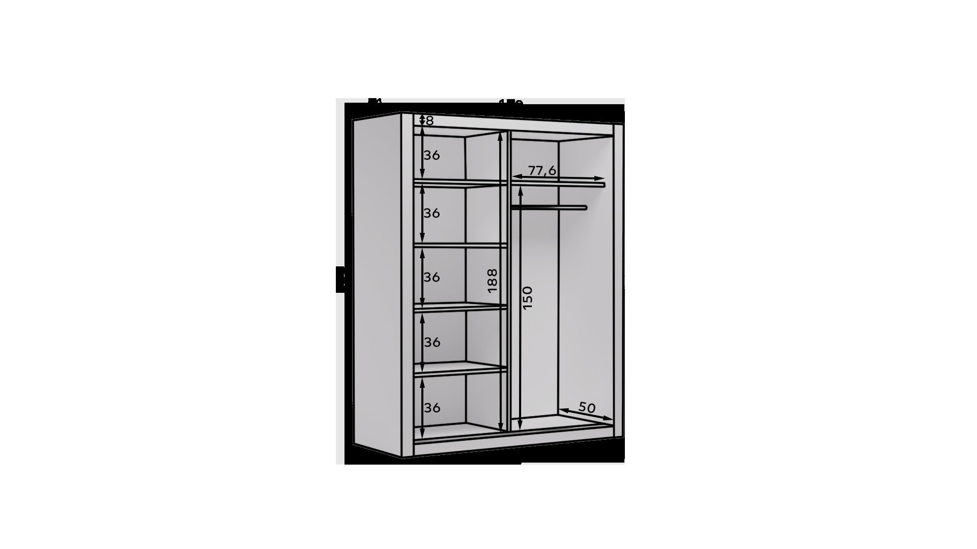 A MOX tolóajtós szekrény ideális módja a tér rendezésének. A bútor tágas polcokkal és egy rúddal van felszerelve, amelyre felakaszthatja a ruhákat, öltönyöket, felsőruházatot vagy ingeket. Annak köszönhetően, hogy a szekrény tolóajtós, nem kell további helyet biztosítani az ajtók kinyitásához, ami ideális megoldássá teszi egy kis szoba vagy keskeny előszoba számára.