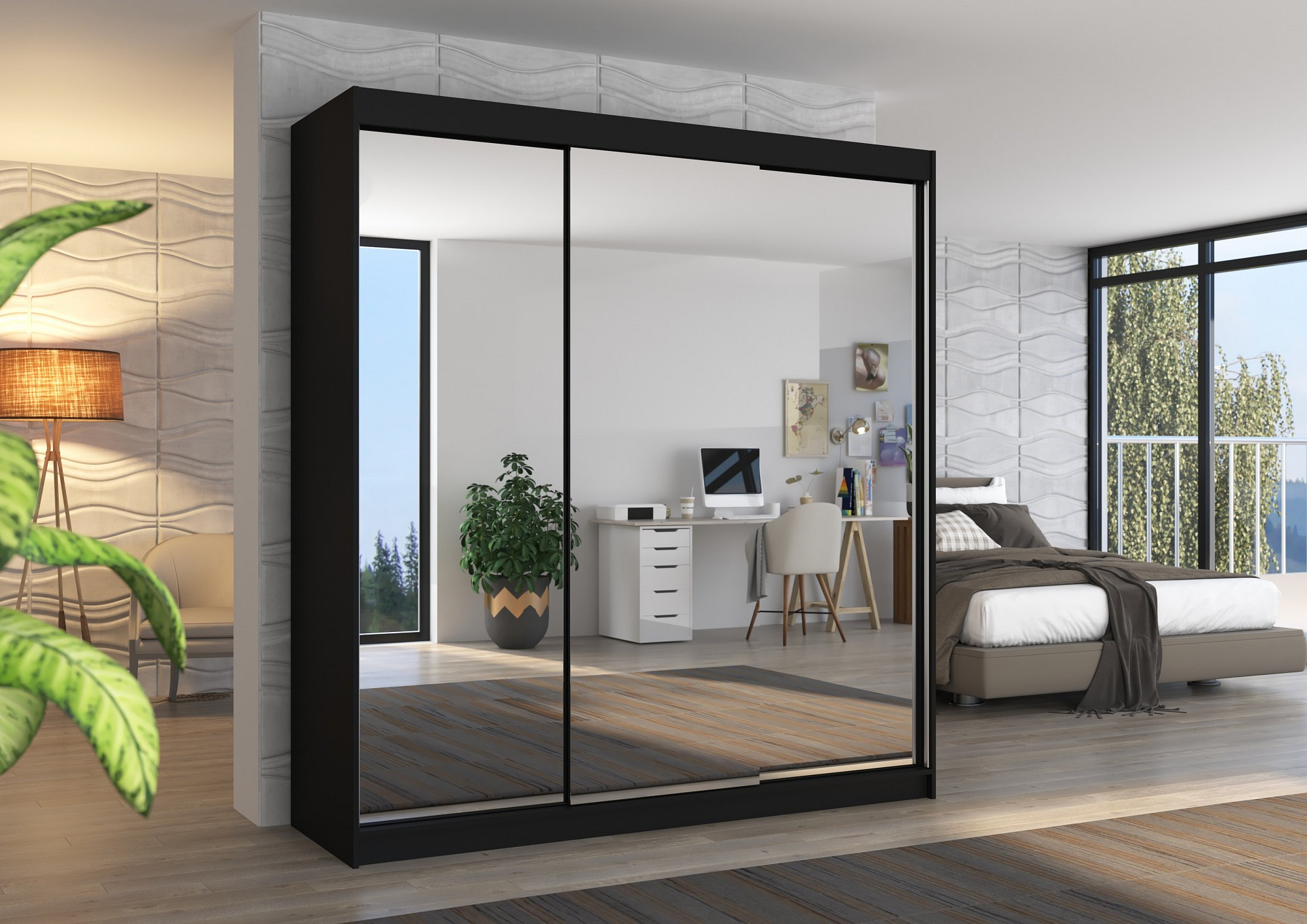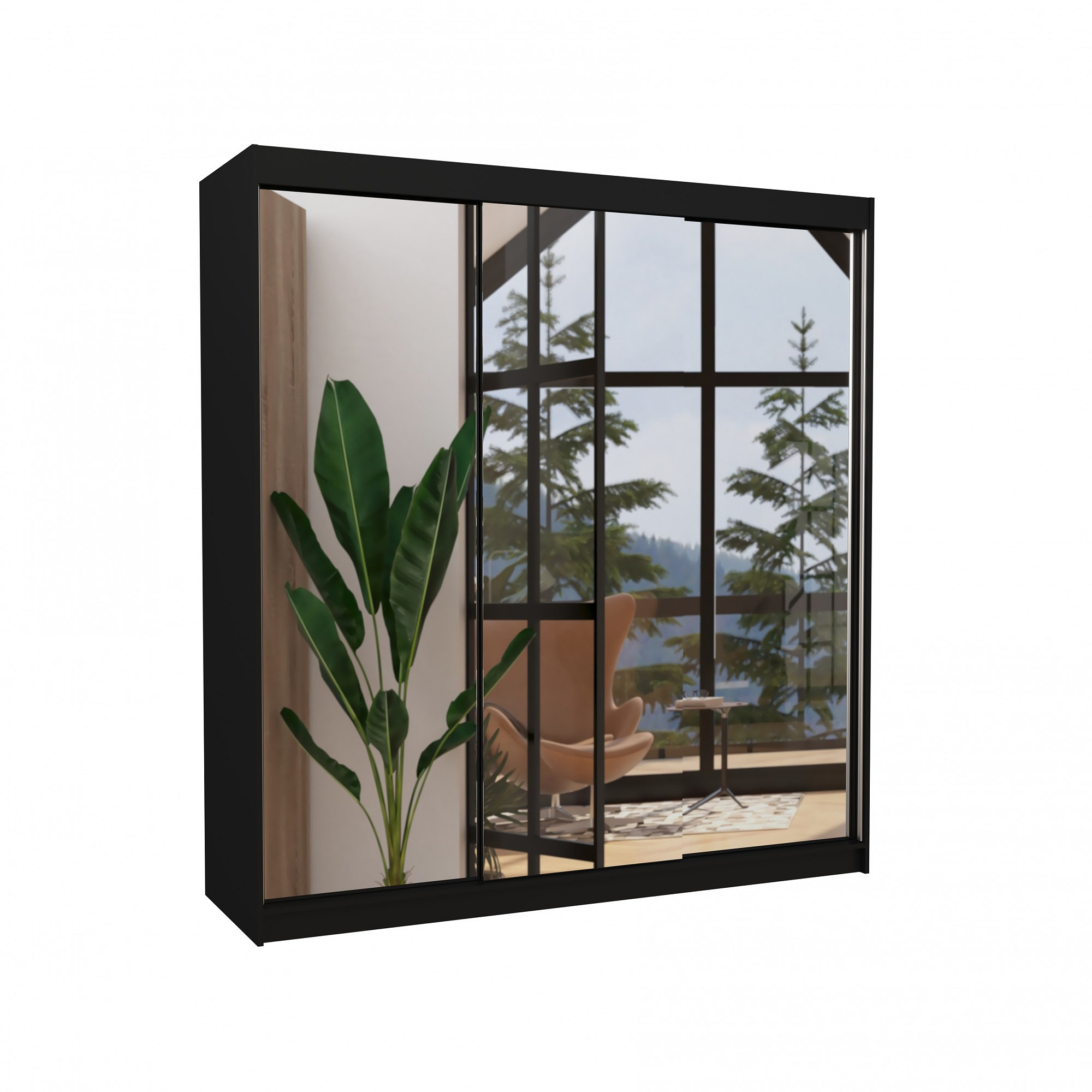 Tolóajtós szekrény tükörrel AUSTIN 200 Fekete+Fekete