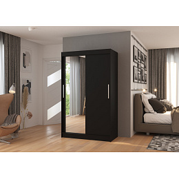 Tolóajtós szekrény tükörrel BARIO 120 Fekete+Fekete