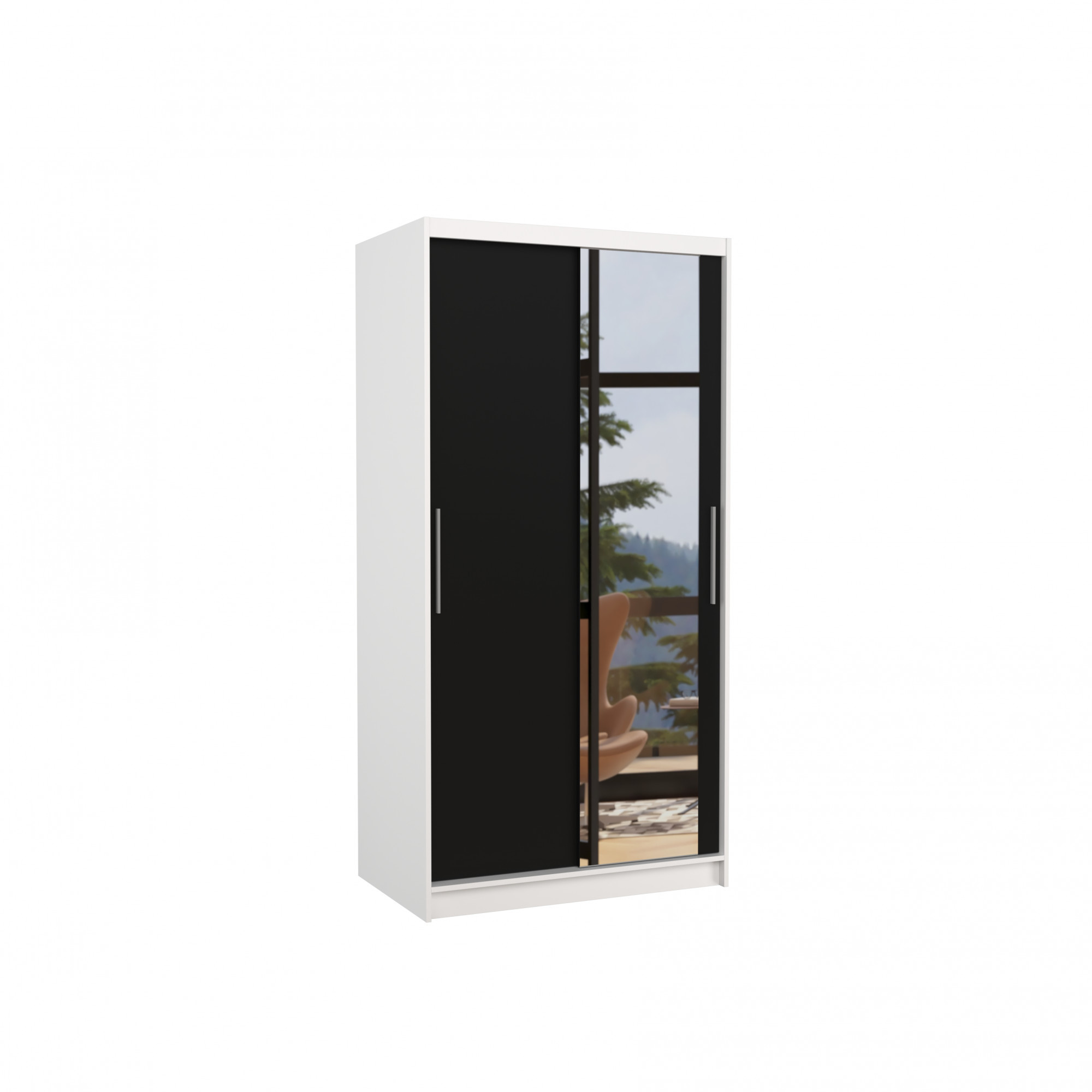 Tolóajtós szekrény tükörrel BAROS 100 Fehér+Fekete