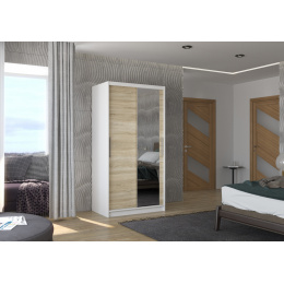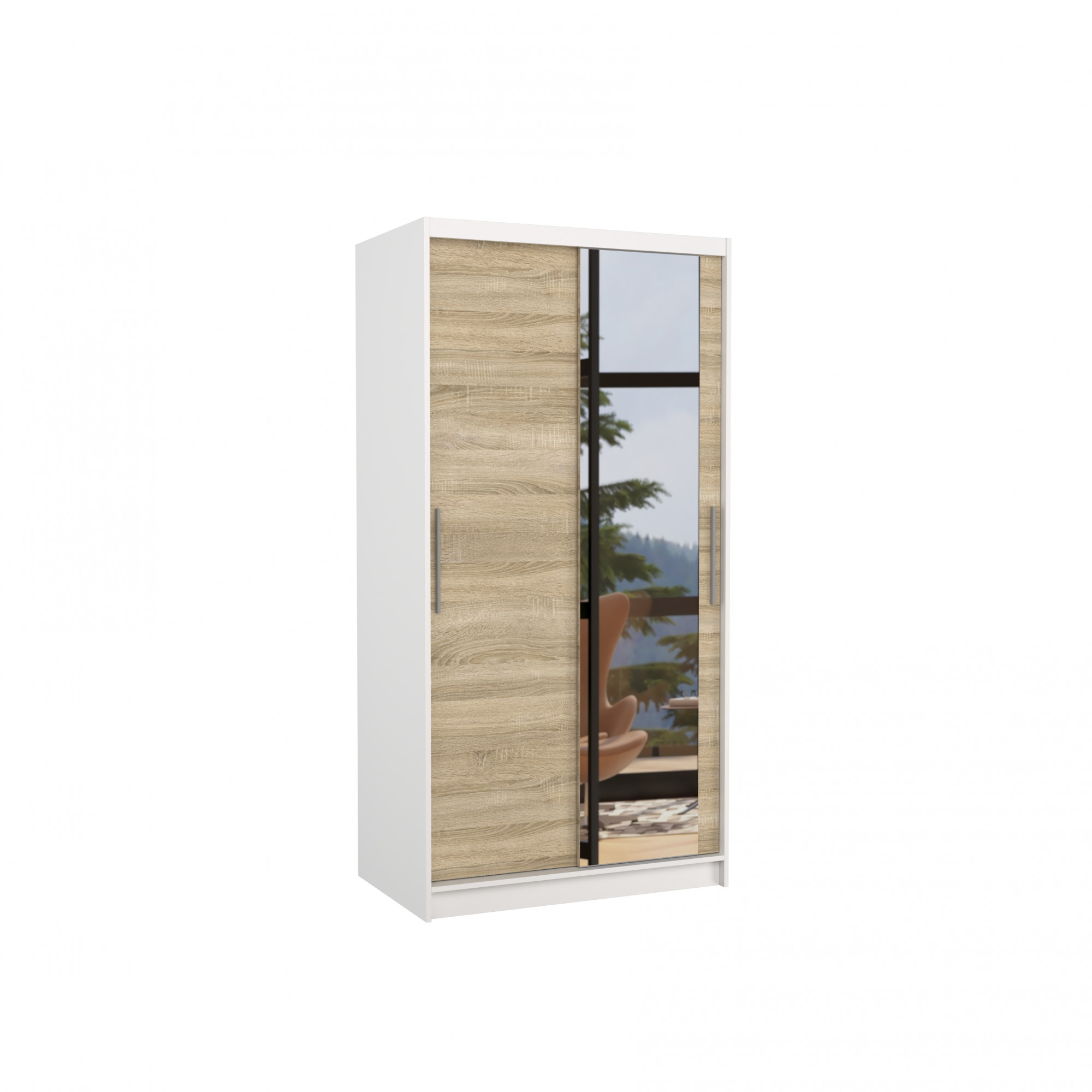 Tolóajtós szekrény tükörrel BAROS 100 Fehér+Sonoma