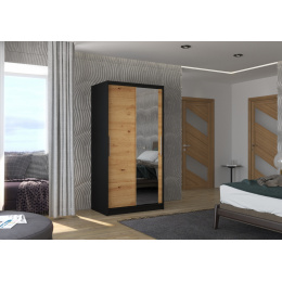 Tolóajtós szekrény tükörrel BAROS 100 Fekete+Artisan
