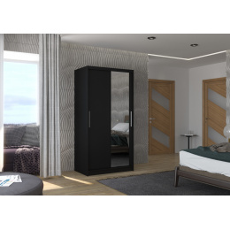 Tolóajtós szekrény tükörrel BAROS 100 Fekete+Fekete