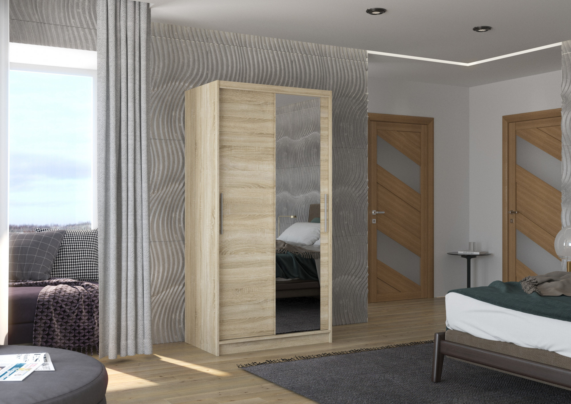 Tolóajtós szekrény tükörrel BAROS 100 Sonoma+Sonoma