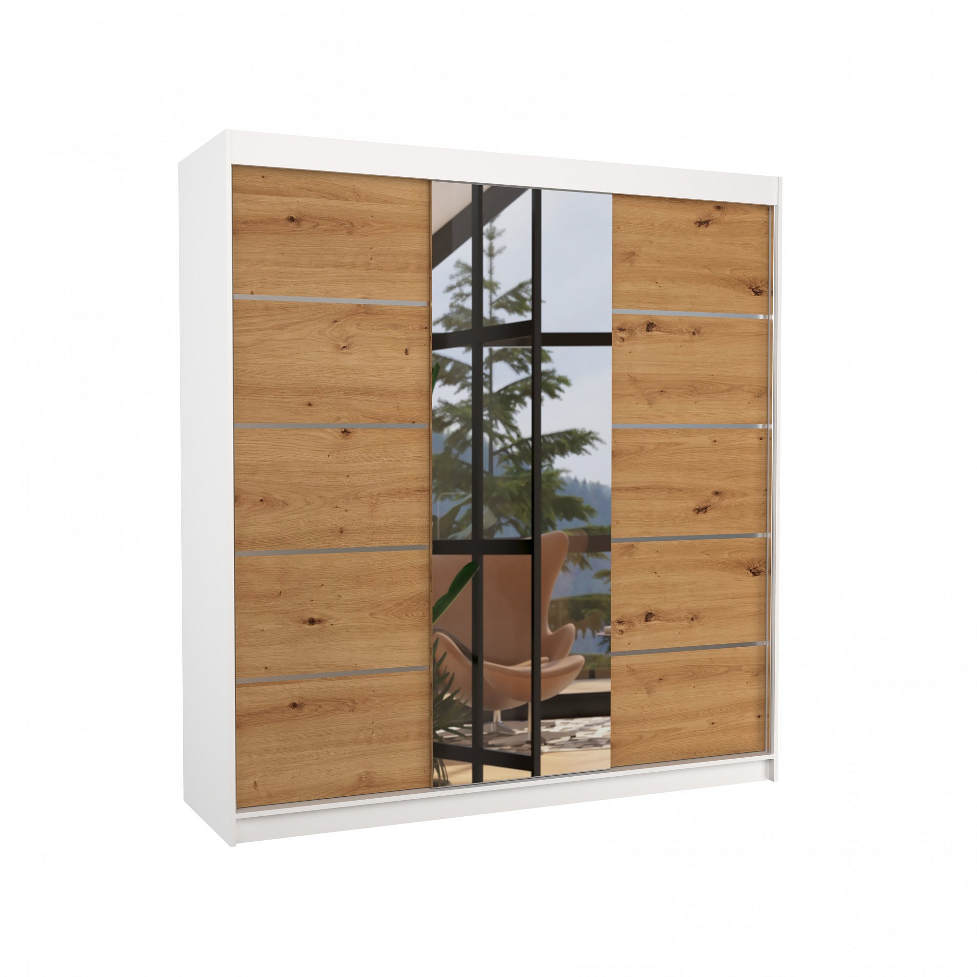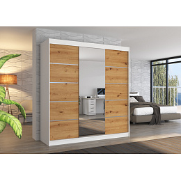 Tolóajtós szekrény tükörrel BERGEN 200 Fehér+Artisan