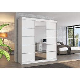 Tolóajtós szekrény tükörrel BERGEN 200 Fehér+Fehér