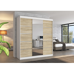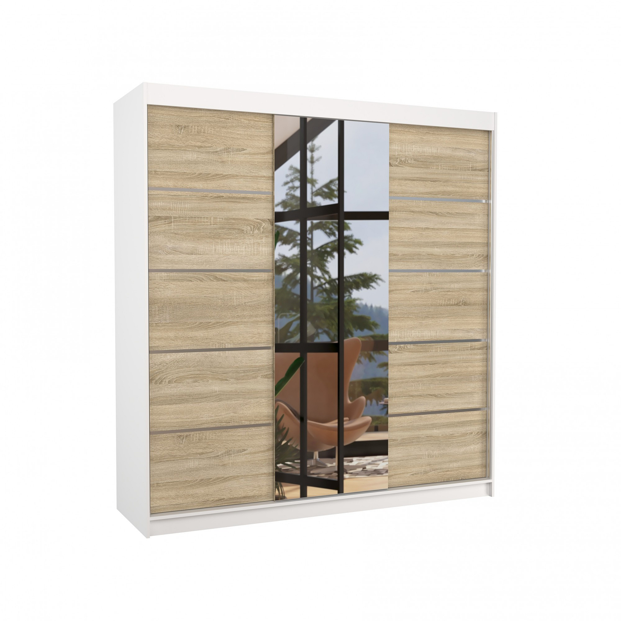 Tolóajtós szekrény tükörrel BERGEN 200 Fehér+Sonoma