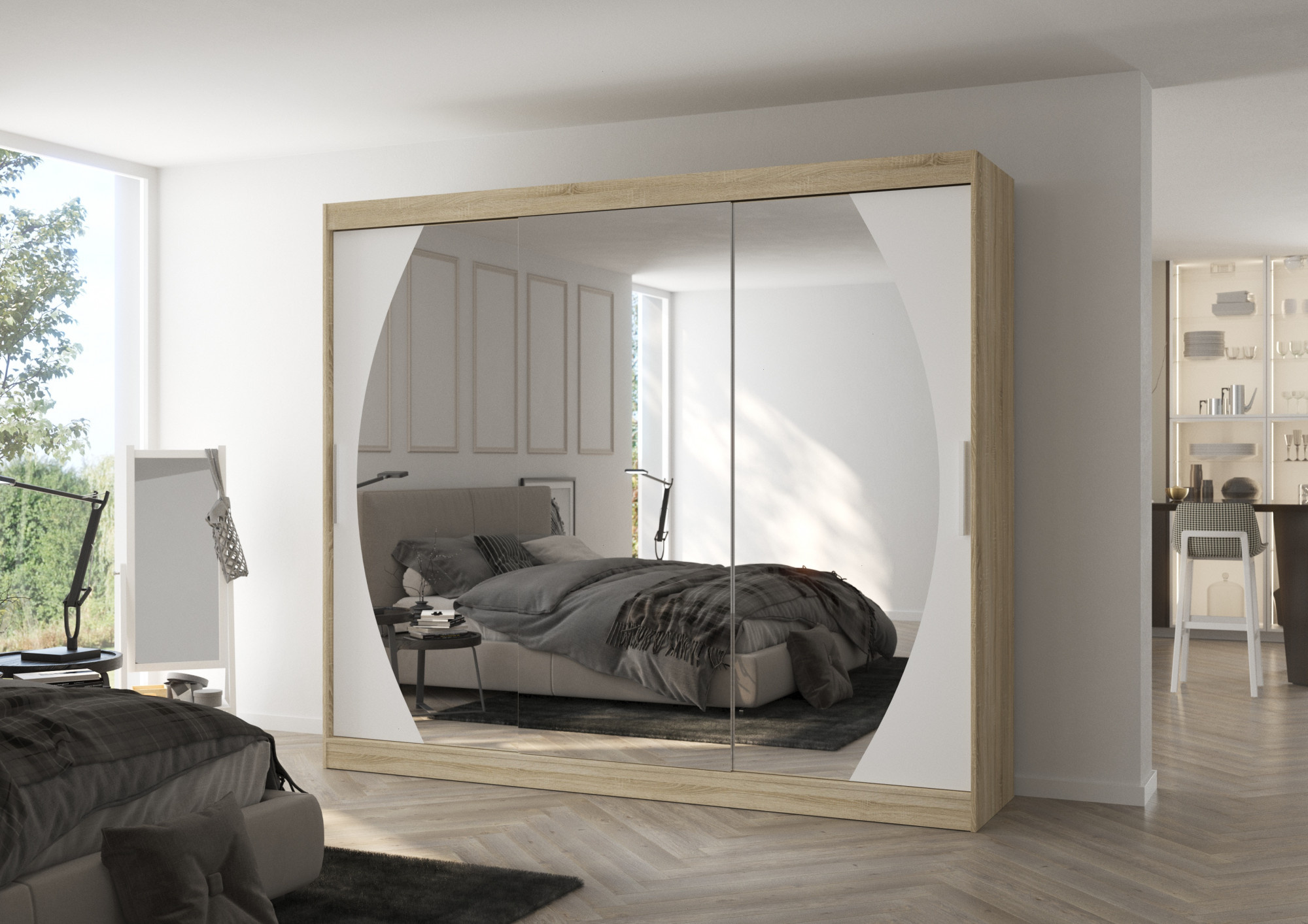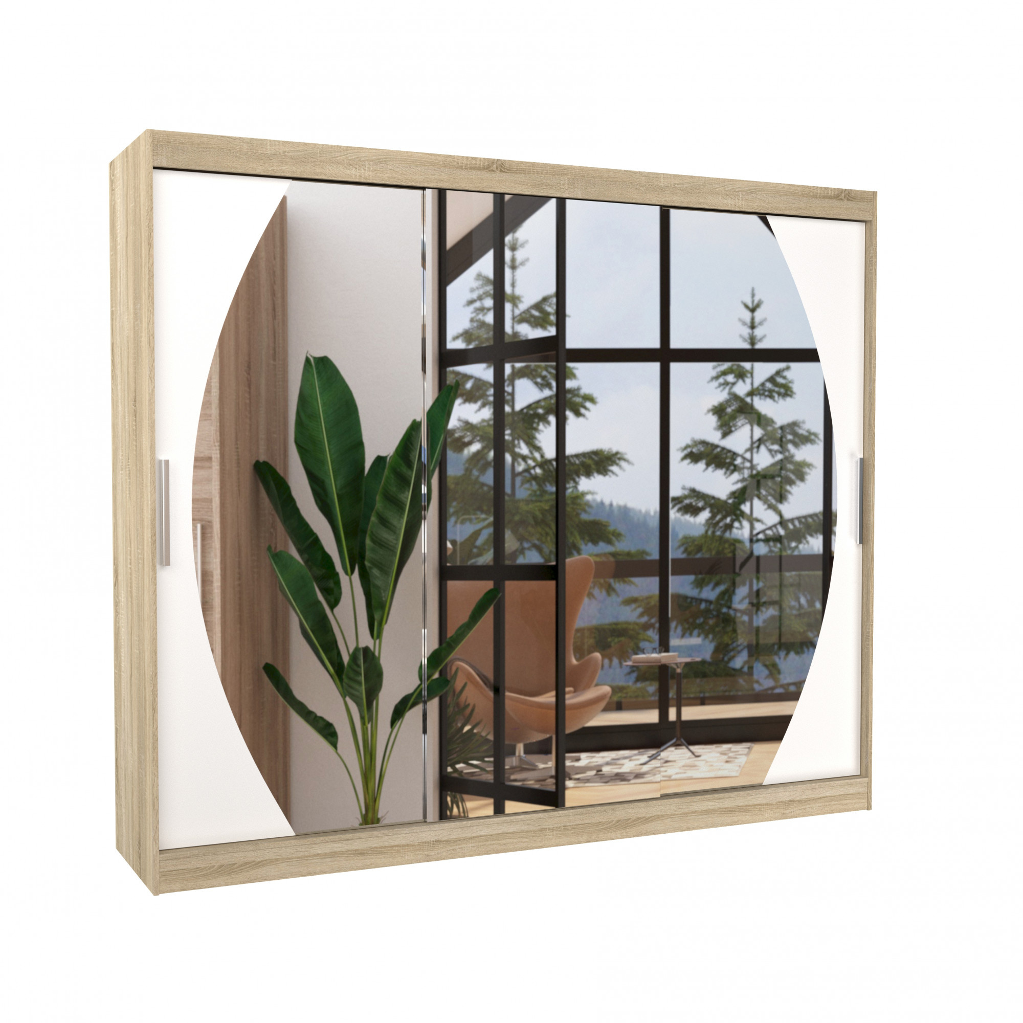 Tolóajtós szekrény tükörrel CAMBE 250 Sonoma+Fehér