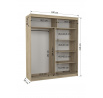 A CHARLOTTE tolóajtós szekrény ideális módja a tér rendezésének. A bútor tágas polcokkal és egy rúddal van felszerelve, amelyre felakaszthatja a ruhákat, öltönyöket, felsőruházatot vagy ingeket. Az elülső oldalon tükrök találhatók, amelyek kivételes stílust kölcsönöznek a bútornak. Annak köszönhetően, hogy a szekrény tolóajtós, nem kell további helyet biztosítani az ajtók kinyitásához, ami ideális megoldássá teszi egy kis szoba vagy keskeny előszoba számára.