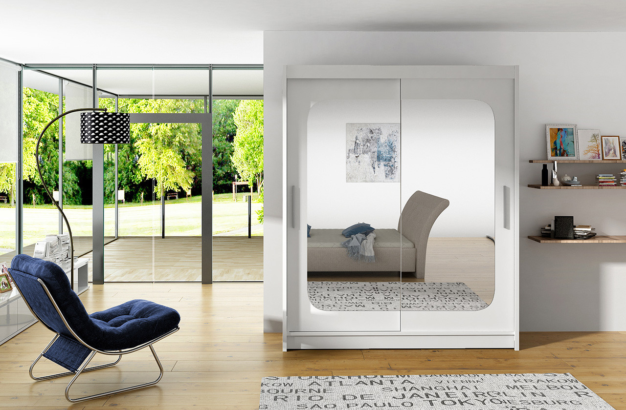 Tolóajtós szekrény tükörrel CLEVER 150 Fehér+Fehér
